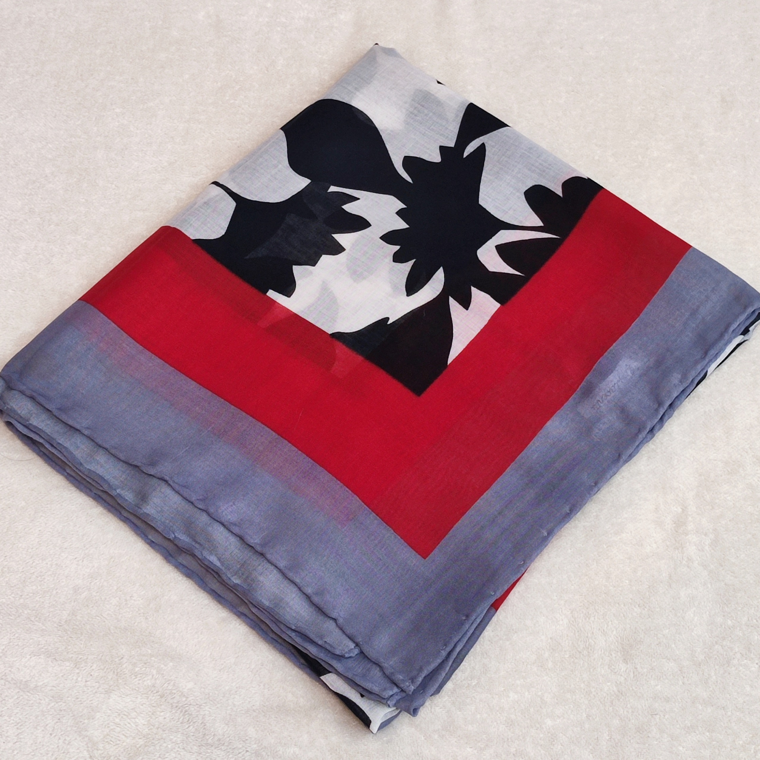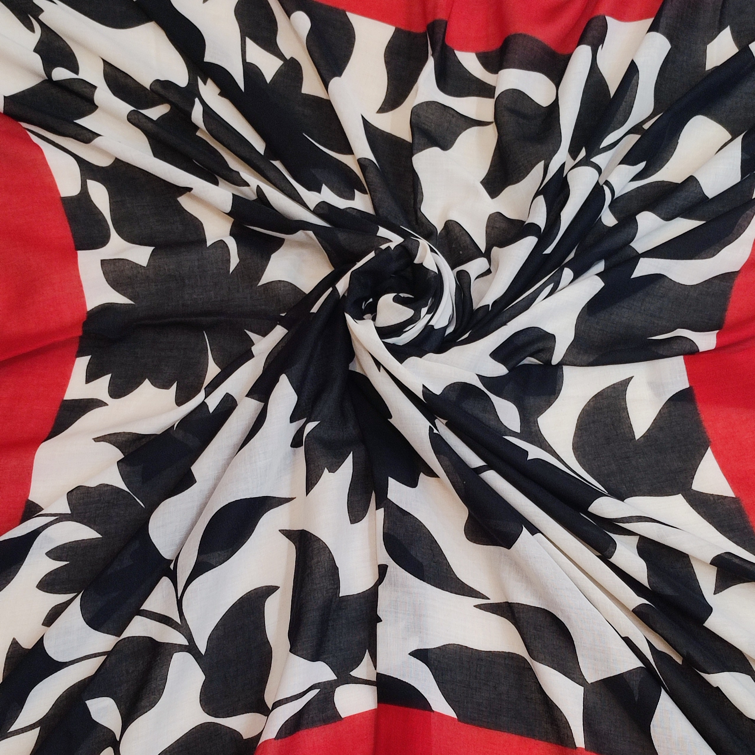 روسری نخی دور دست دوز قواره دار قرمز مشکی