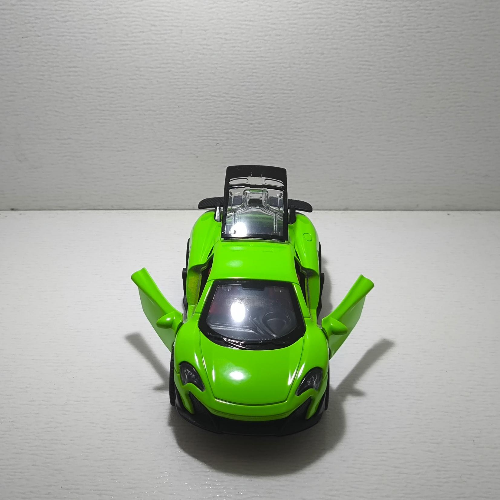 ماکت ماشین فلزی مک لارن موزیکال و چراغدار و عقب کش قدرتی،رنگ سبز، سه درب بازشو، کیفیت فوق العاده است و جزئیات داخلی ماشین به خوبی رعایت شده است، این محصول آماده ارسال میباشد، سفارشات عمده یک هفته طول میکشد.