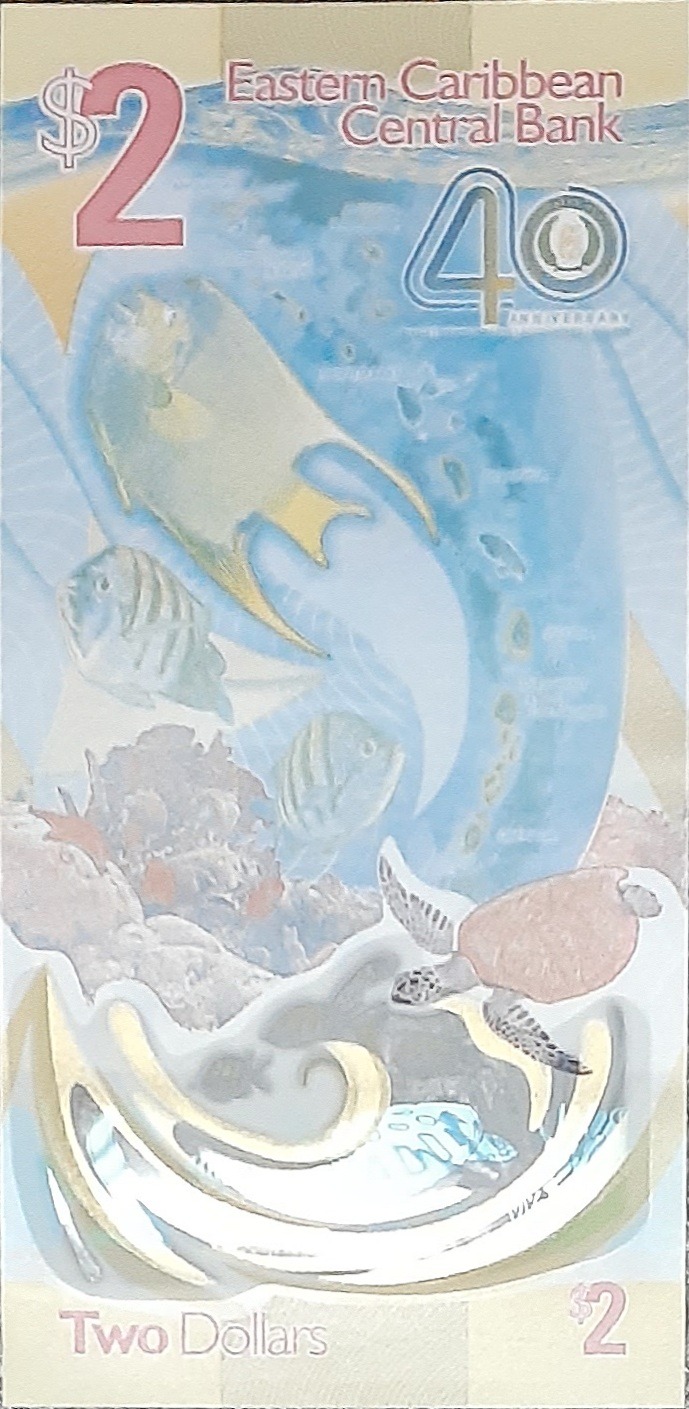 اسکناس 2 دلار کارائیب شرقی پلیمری