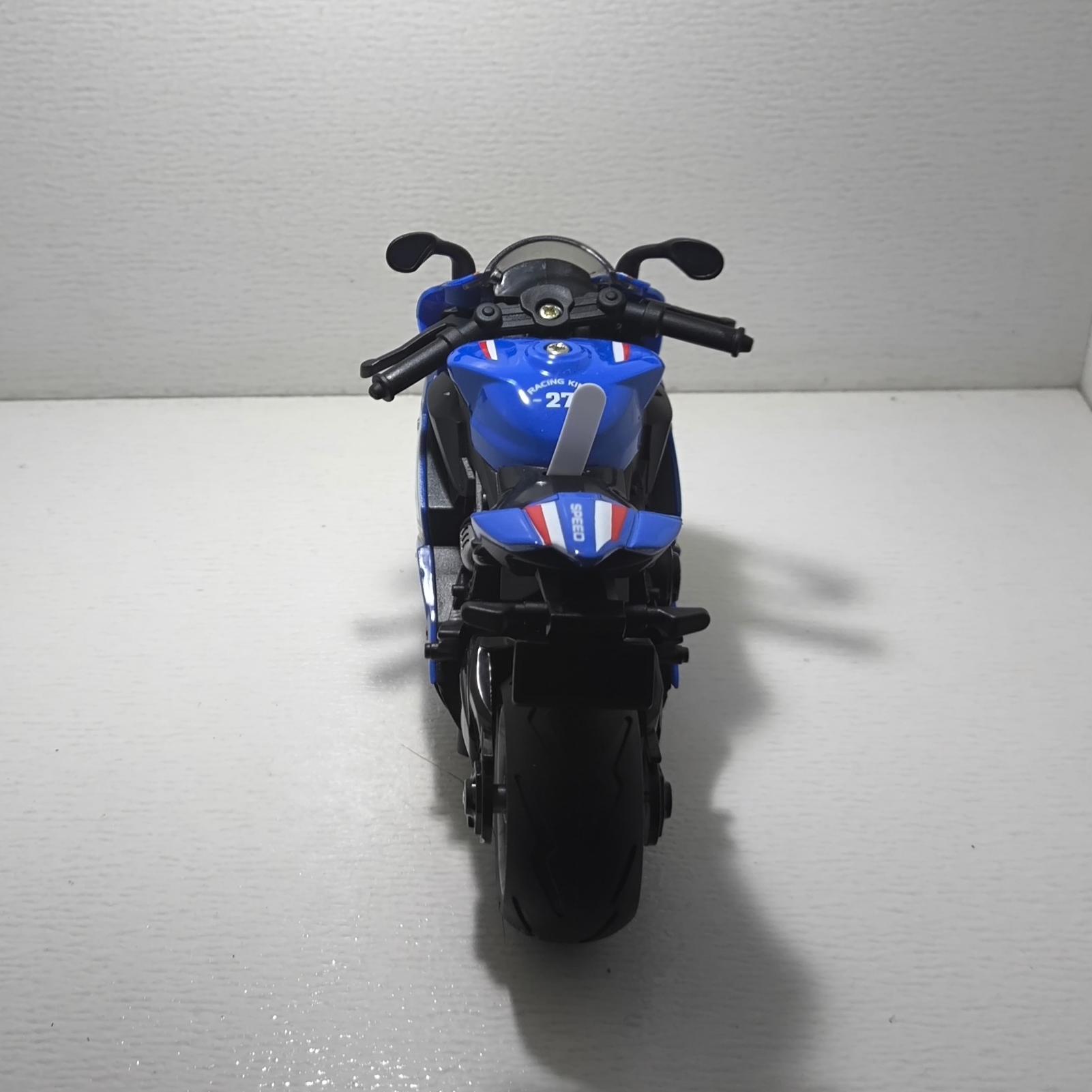 ماکت موتور فلزی کاوازاکی، سه موزیکاله و چراغدار و عقب کش قدرتی رنگ آبی، کمک عقب کار میکند، دارای فرمان پذیری، ساخته شده از ترکیب فلز و پلاسیک میباشد، کیفیت فوق العاده است و جزئیات به خوبی رعایت شده است، این محصول آماده ارسال میباشد، سفارشات عمده یک هفته طول میکشد.