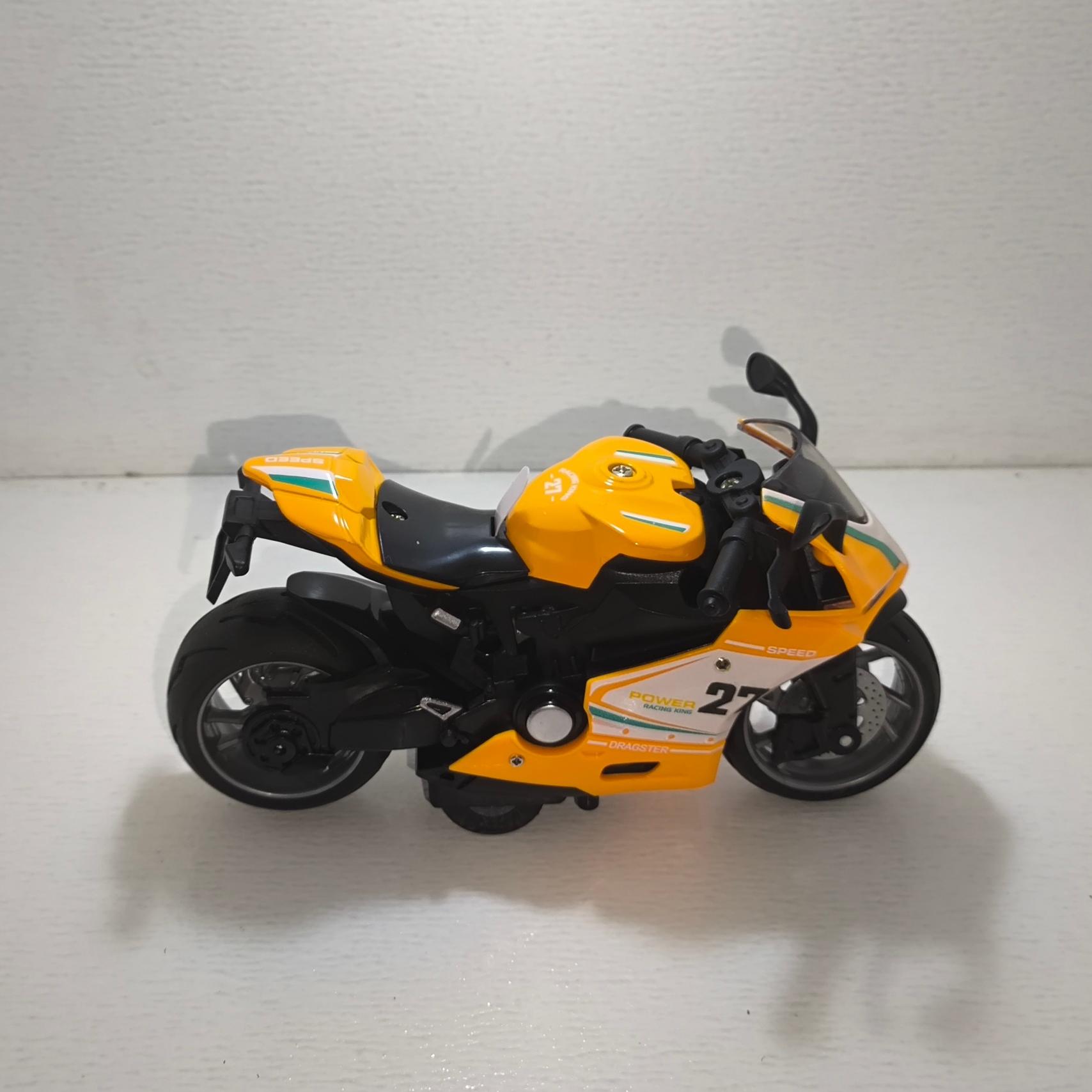 ماکت موتور فلزی کاوازاکی، سه موزیکاله و چراغدار و عقب کش قدرتی رنگ طلایی، کمک عقب کار میکند، دارای فرمان پذیری، ساخته شده از ترکیب فلز و پلاسیک میباشد، کیفیت فوق العاده است و جزئیات به خوبی رعایت شده است، این محصول آماده ارسال میباشد، سفارشات عمده یک هفته طول میکشد.