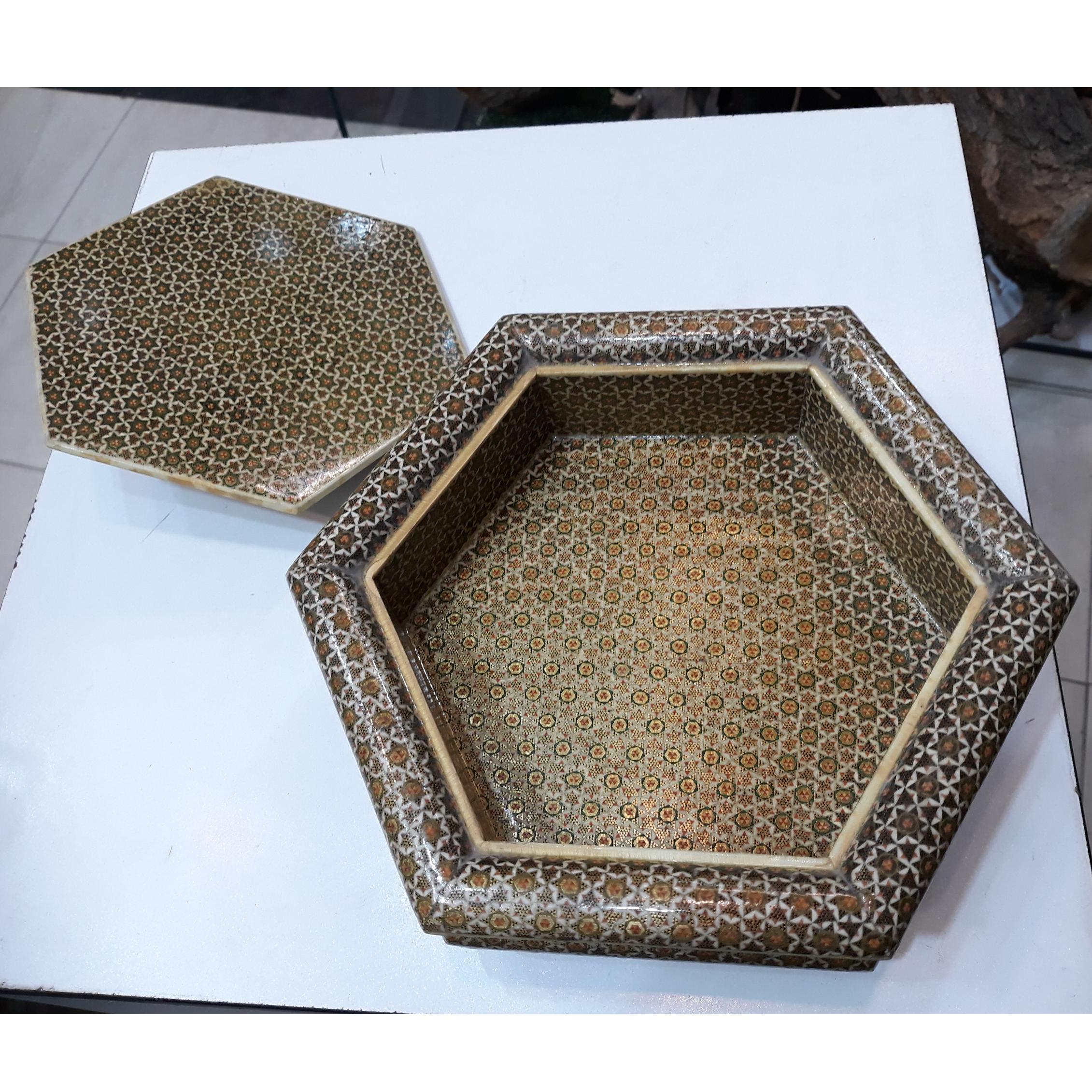 جعبه خاتمکاری ششضلعی دستساز اثر اصیل اصفهان
