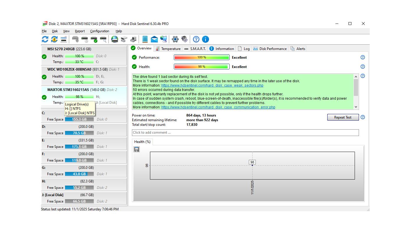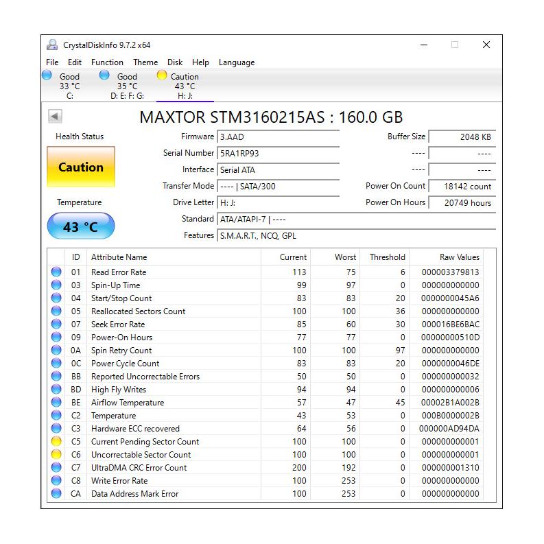 هارد 160 گیگ ساتا Maxtor DiamondMax (سلامت 98)
