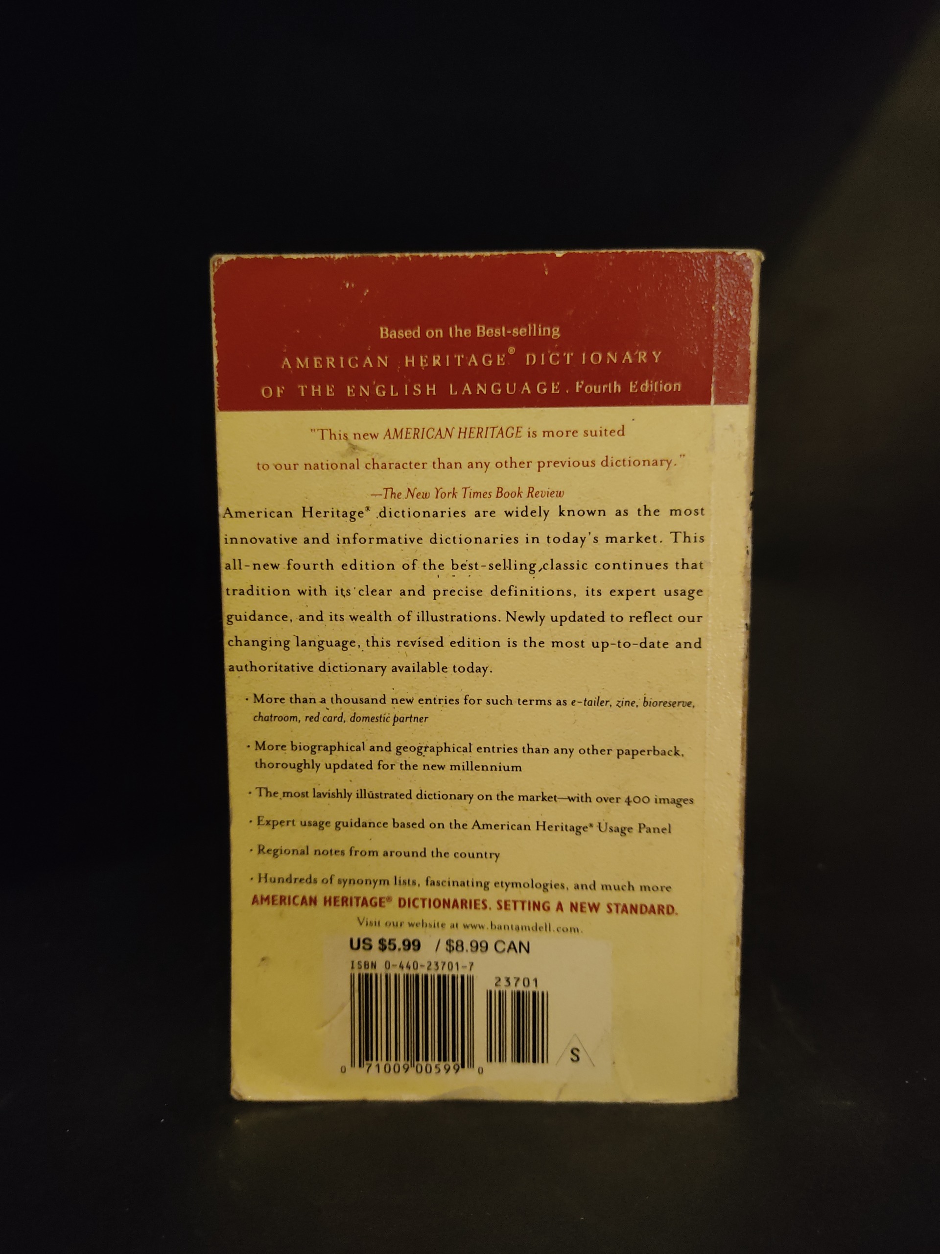 American Heritage dictionaries are widely known as the most innovative and informative dictionaries in todays market. This all-new fourth edition of the best-selling classic continues that tradition with its clear and precise definitions, its expert usage guidance,