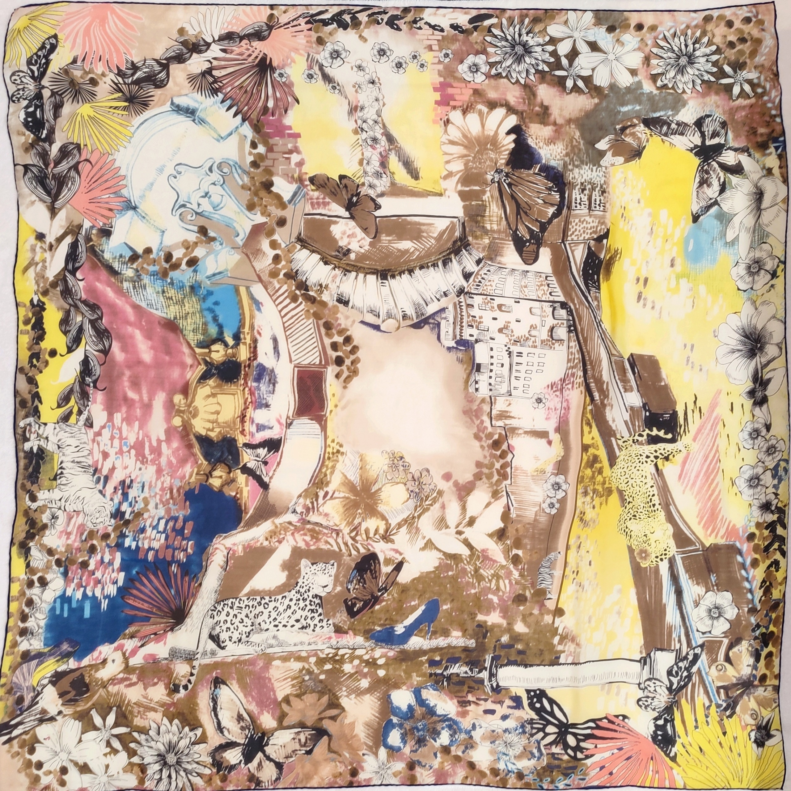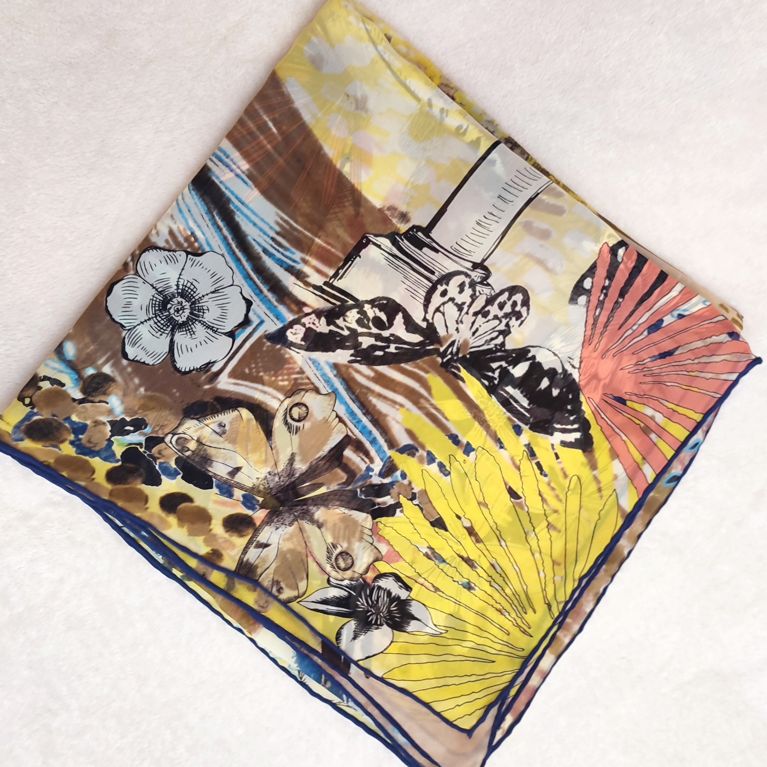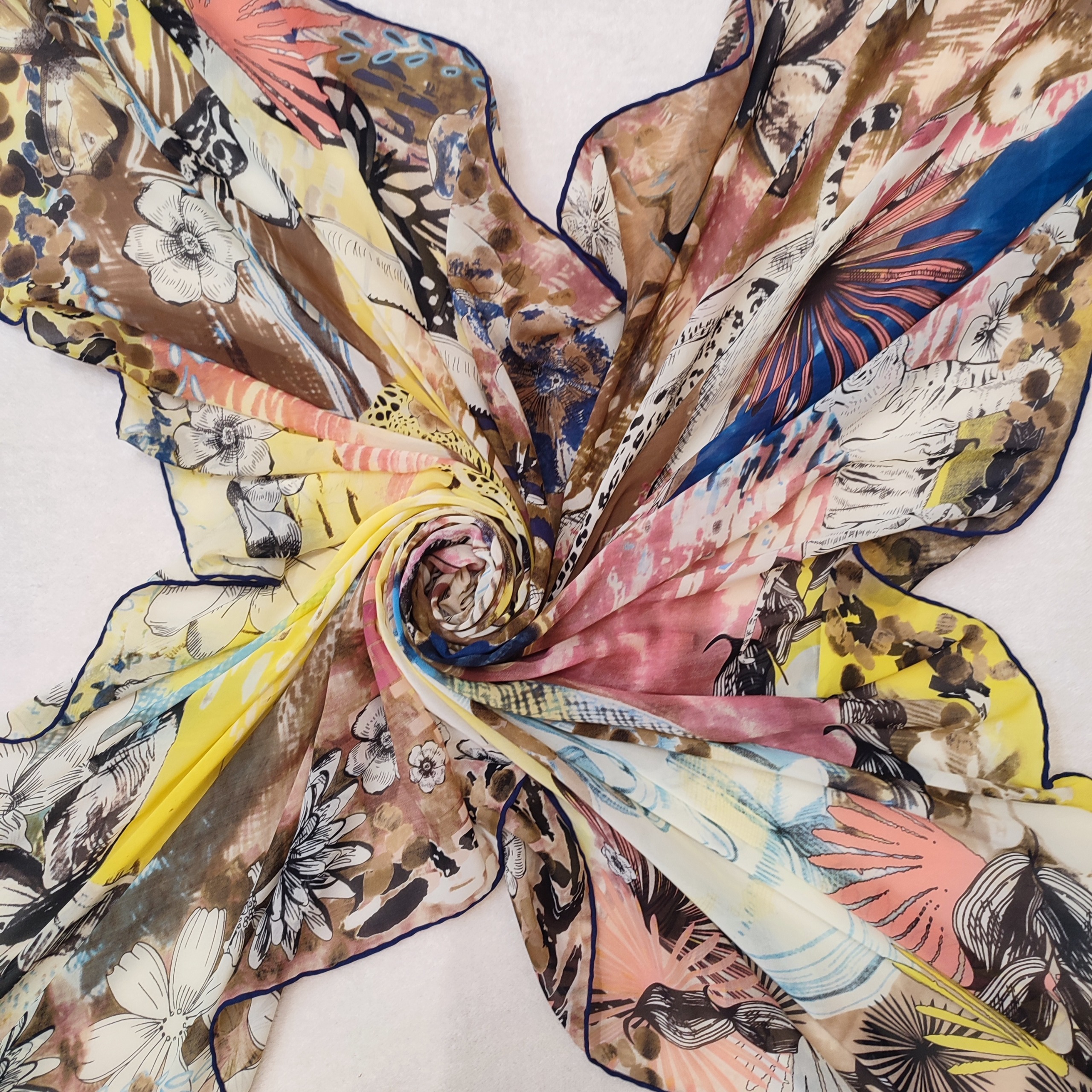 روسری حریر دور دست دوز آبرنگی وارداتی