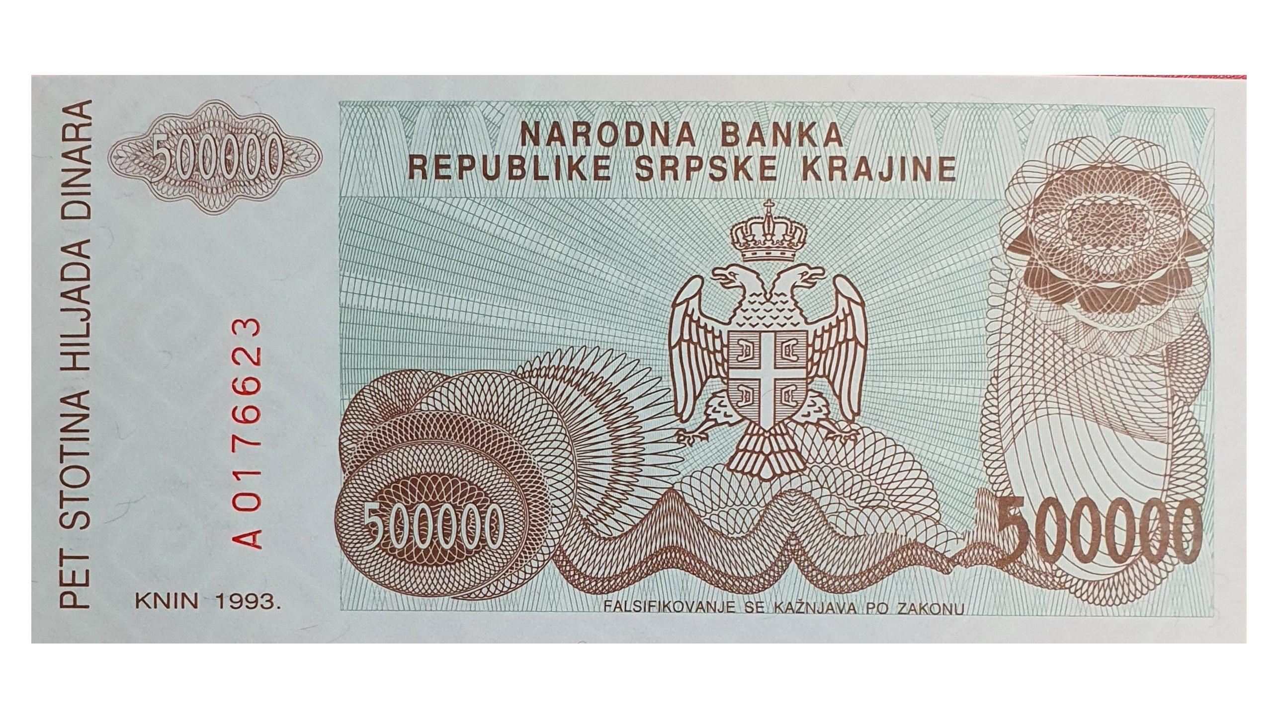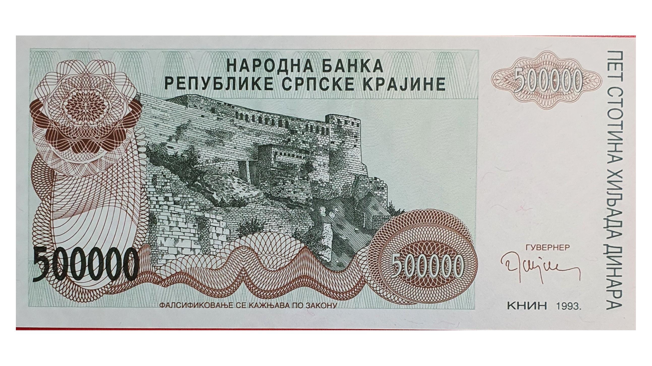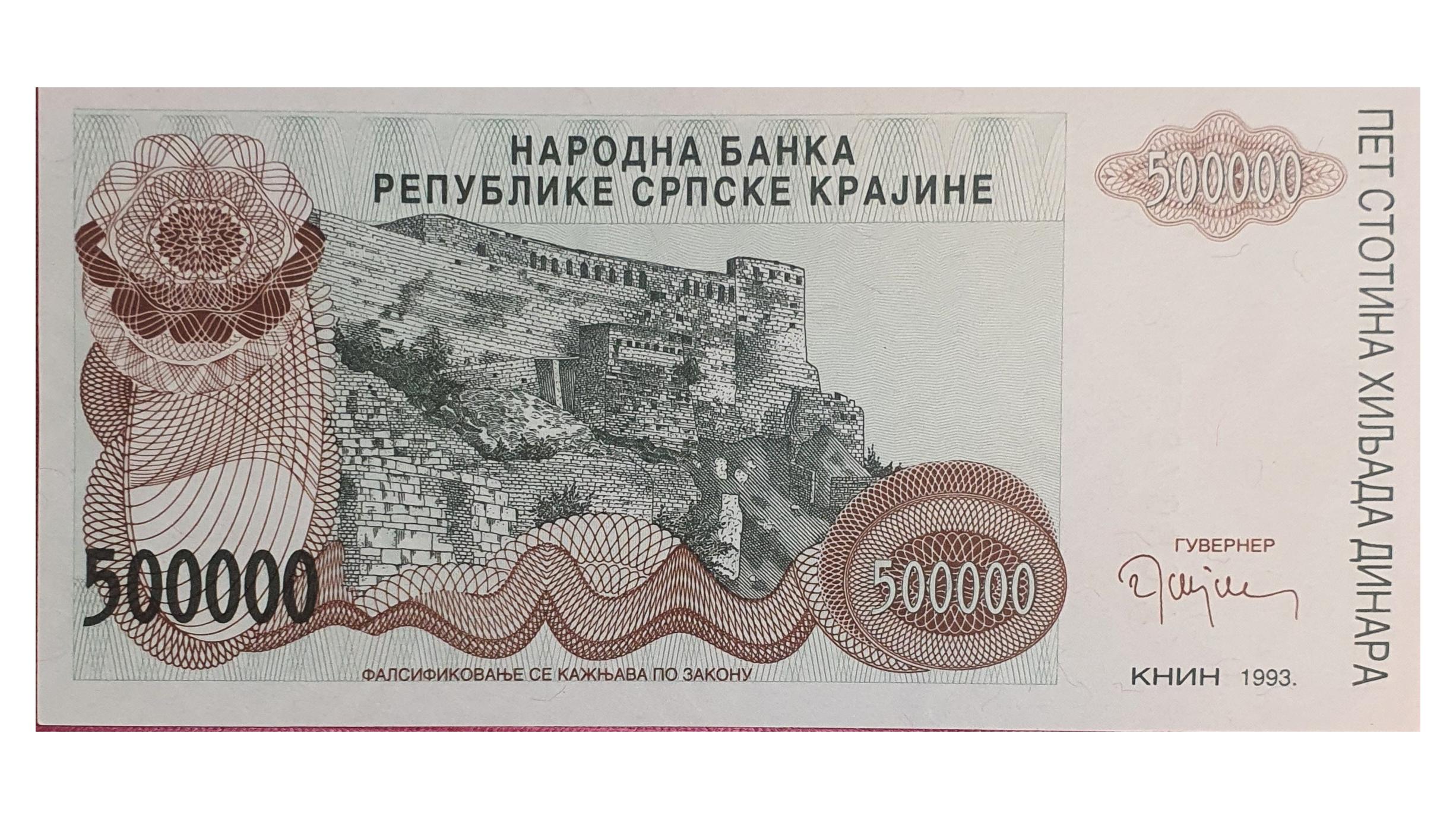 اسکناس 500.000 دینار 1993 کرواسی صربستان کراینا