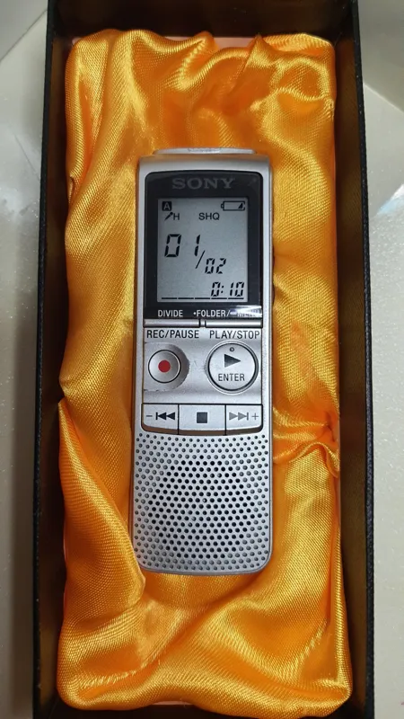 دستگاه ضبط خبرنگاری ، برند سونی ، قابلیت ضبط صدا 500ساعت بر حافظه داخلی یک گیگ ، سفارش کانادا ساخت تایلند.