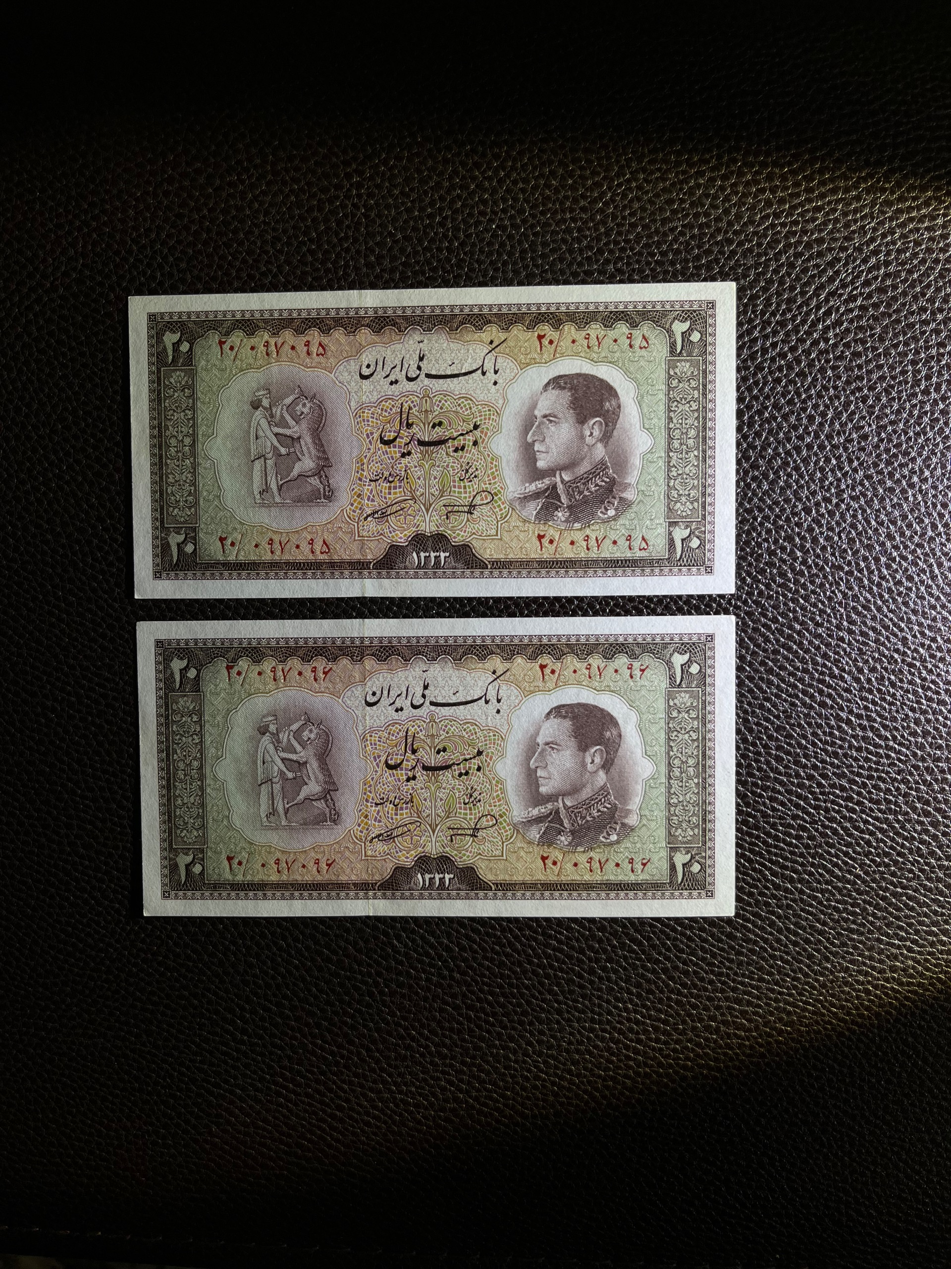 جفت بسیار زیبای 20 ریال نیم رخ شماره بینظیر