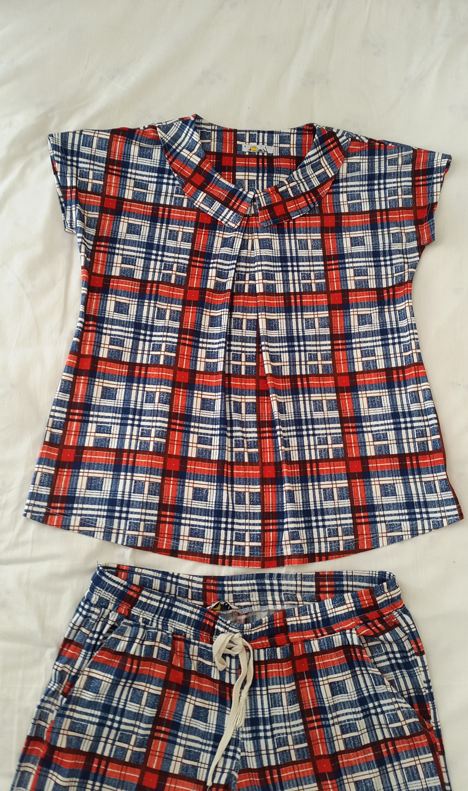 جنس با کیفیت است و کاغذی و نازک نیست، رنگ ثابت، شلوار حالت برمودا دارد.