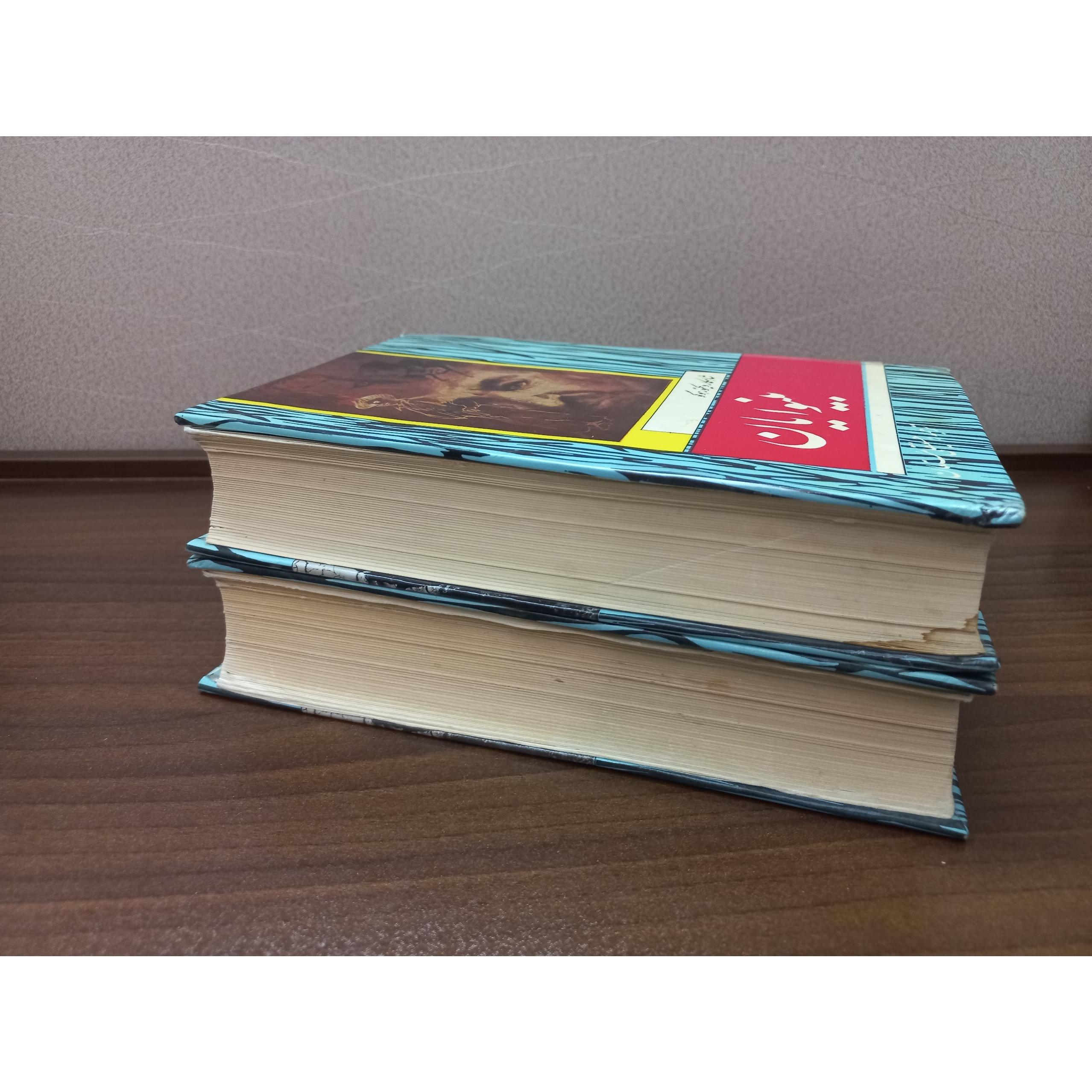 در عکس سوم لکه هایی از بیرون روی برگه های جلد دوم هست که نم خوردگی نیست و صفحات کتاب تمیز صد در صدی هست