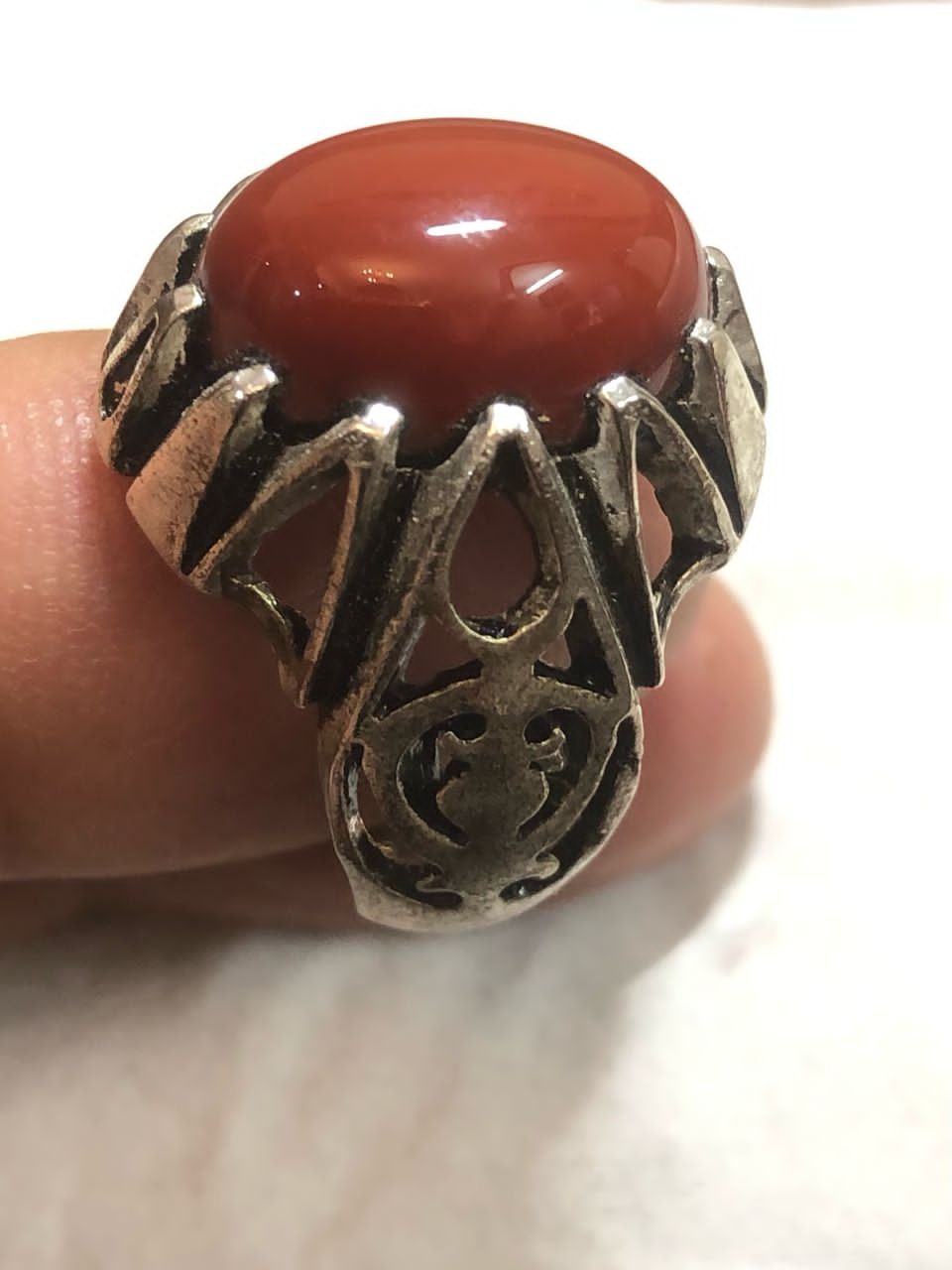انگشتر عقیق طبیعی معدنی با رکاب نقره عیار پایین ولی زیبا وخوش پسند