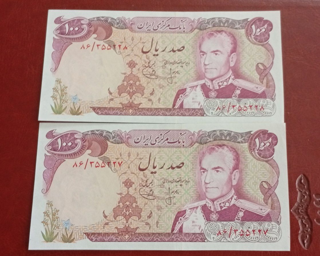 یک جفت اسکناس صد ریال شونه پهن در حد سوپر بانکی ولی شما بانکی حساب کنید