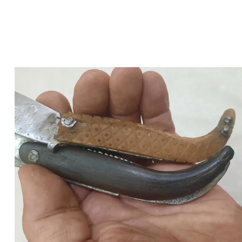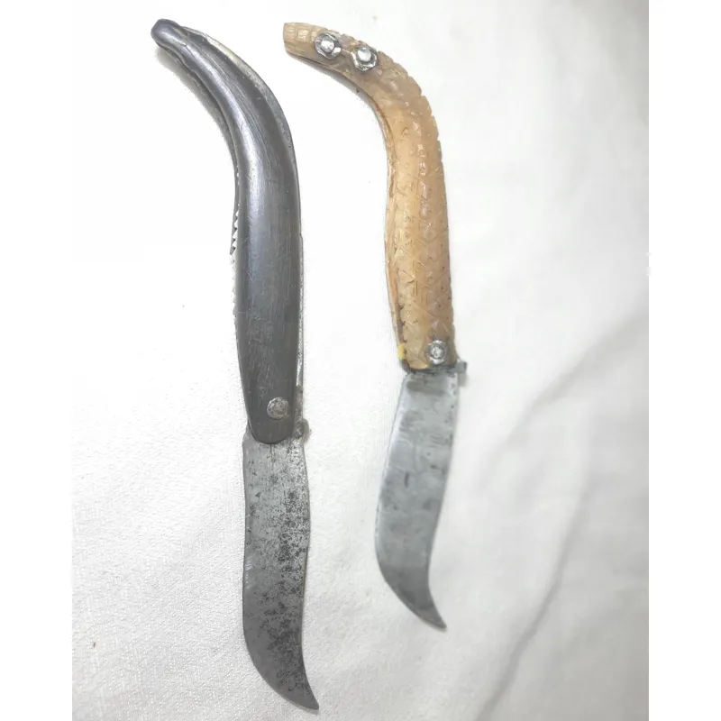 دوستان گرامی این دوتا چاقوی دسته شاخ قدیمی با کاربرد دوگانه هم چاقو و هم یک آره کوچک داره که در دوران قدیم باهاش شاخه های اضافی گل و گیاهان رو حرس میکردن .