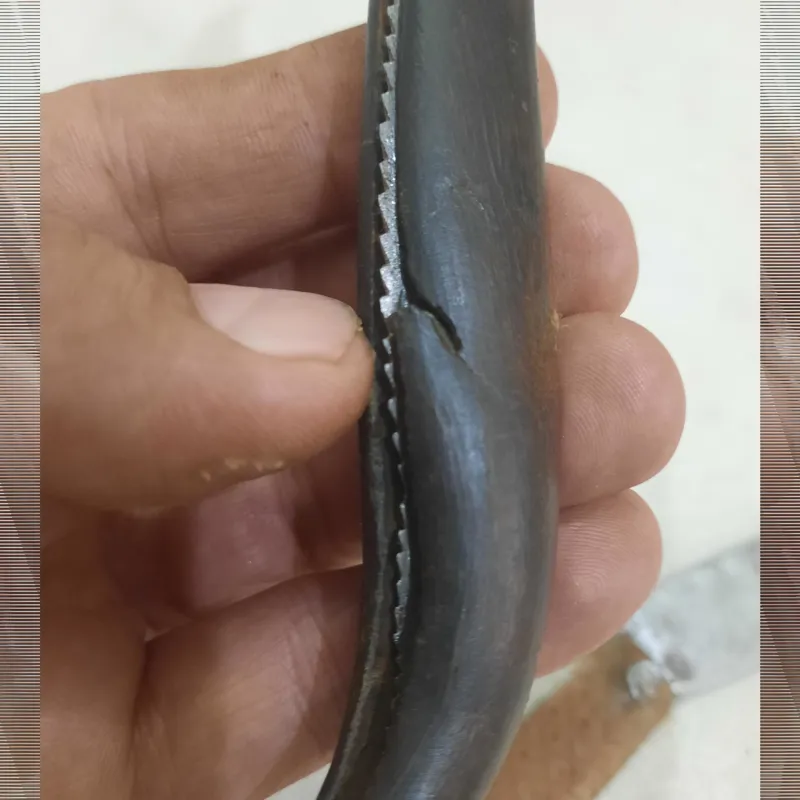 روی چاقوی دسته سیاه شاخ یه ترک کوچک داره که داخل تصویر نشون دادم . و براحتی میتونید مرمتش کنید