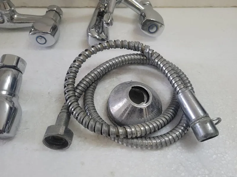 شیر آب ظرفشویی توالت و حمام. جنس تمام برنج با مغزی برنجی جنس دستگیره ها و علم ظرفشویی کاملا برنجی است یک مغزی خراب است و یک دستگیره برنجی کسری دارد. کاملا مطابق تصاویر ارسال می شود. وزن قسمت برنجی 4100 گرم وزن کل 4400 گرم جنس عالی و سنگین و توپر قدیمی