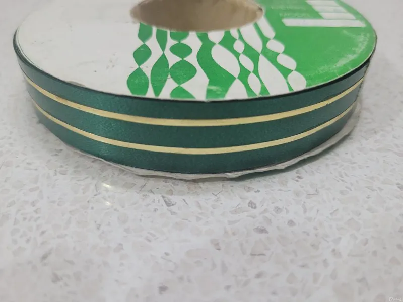 روبان سبز رنگ 50 متری با دوخط طلایی برجسته کد 889