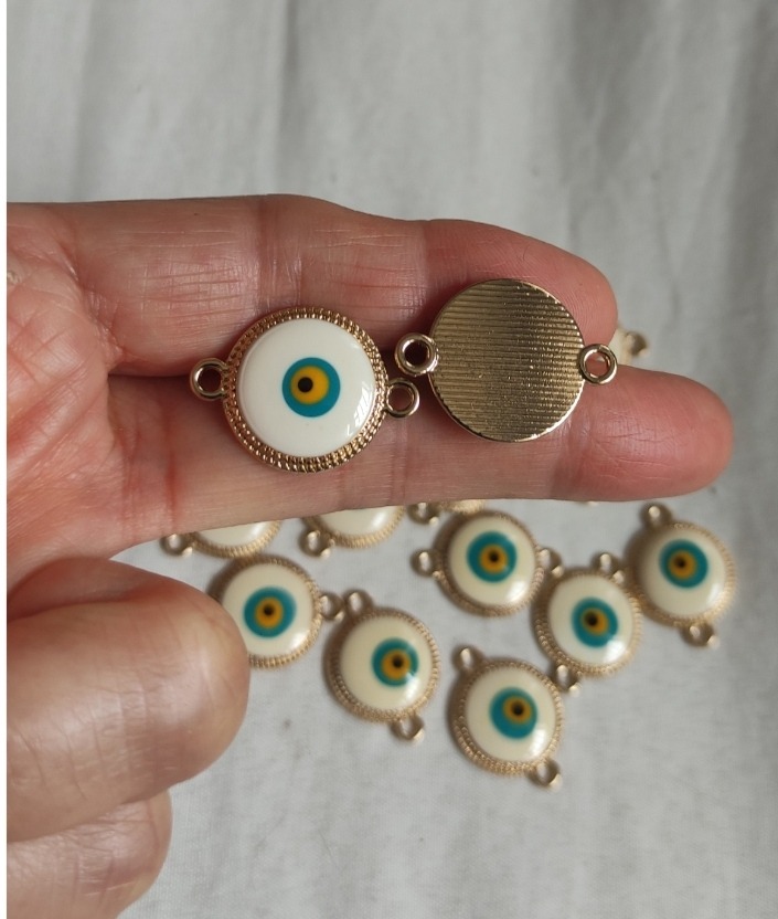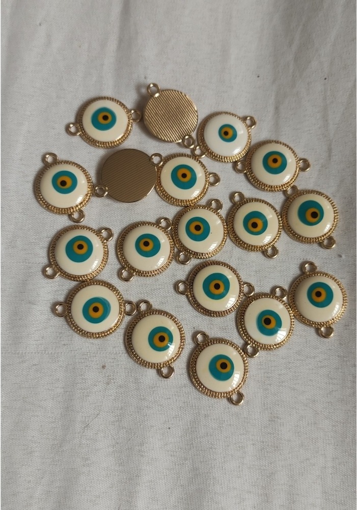 18 عدد خرج کار چشم نظر،قابل توجه کسایی که زیور الات یا کیف،یا کارهای دستی درست میکنند ومیتونن برای زیبایی کار از اینها استفاده کنند.