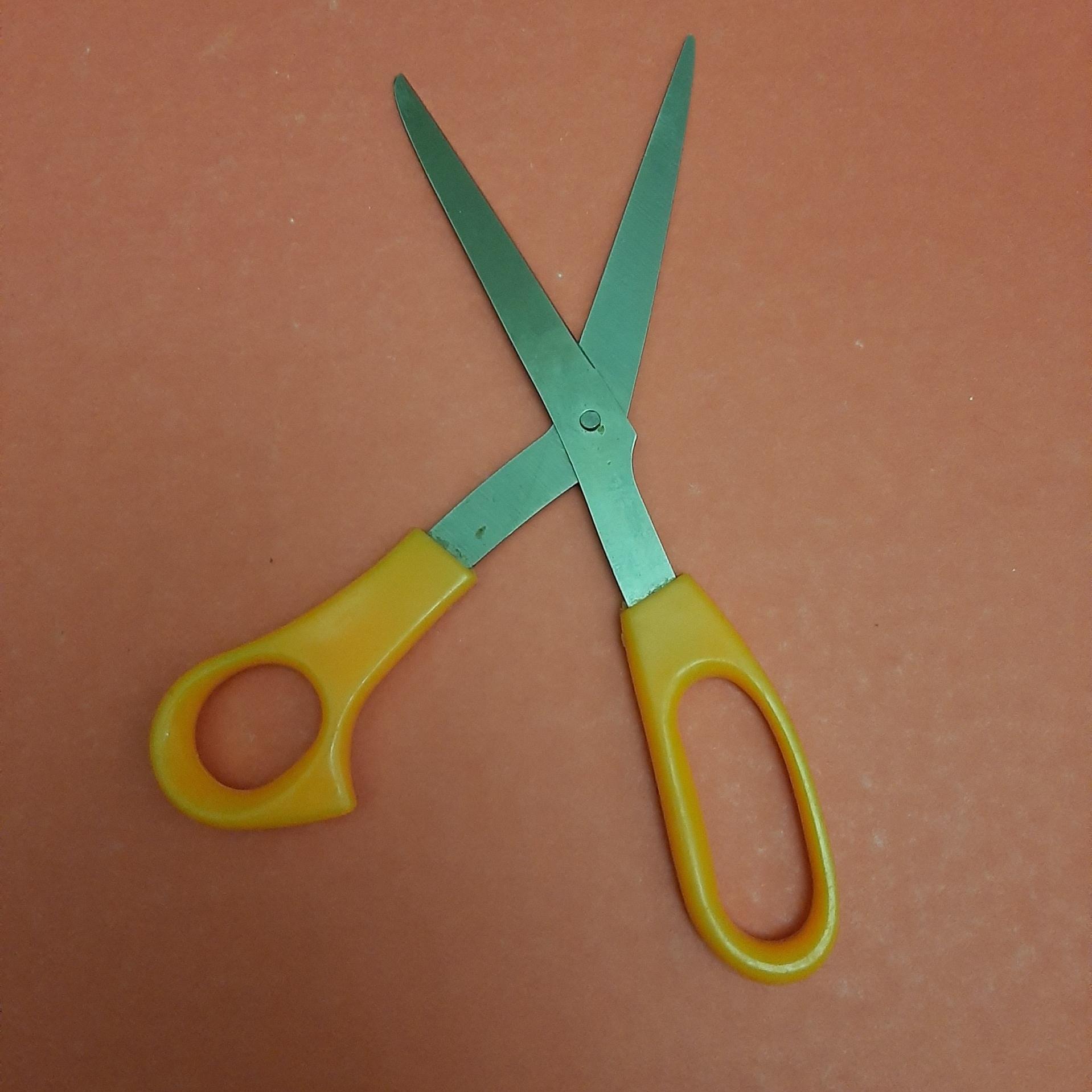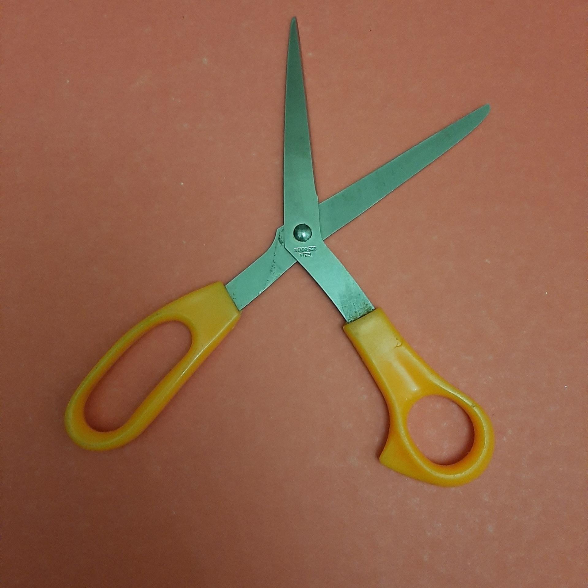 قیچی خیاطی . جنس دسته قیچی پلاستیک و جنس تیغه قیچی استیل است .
