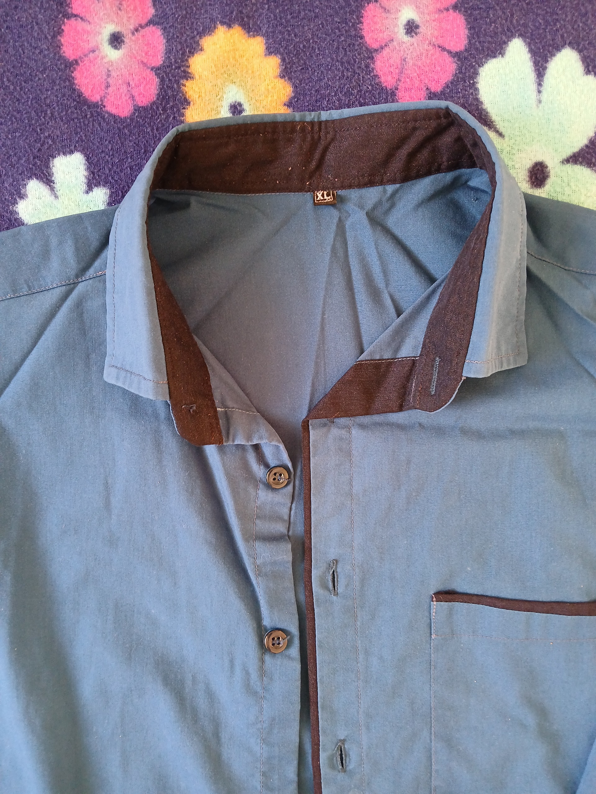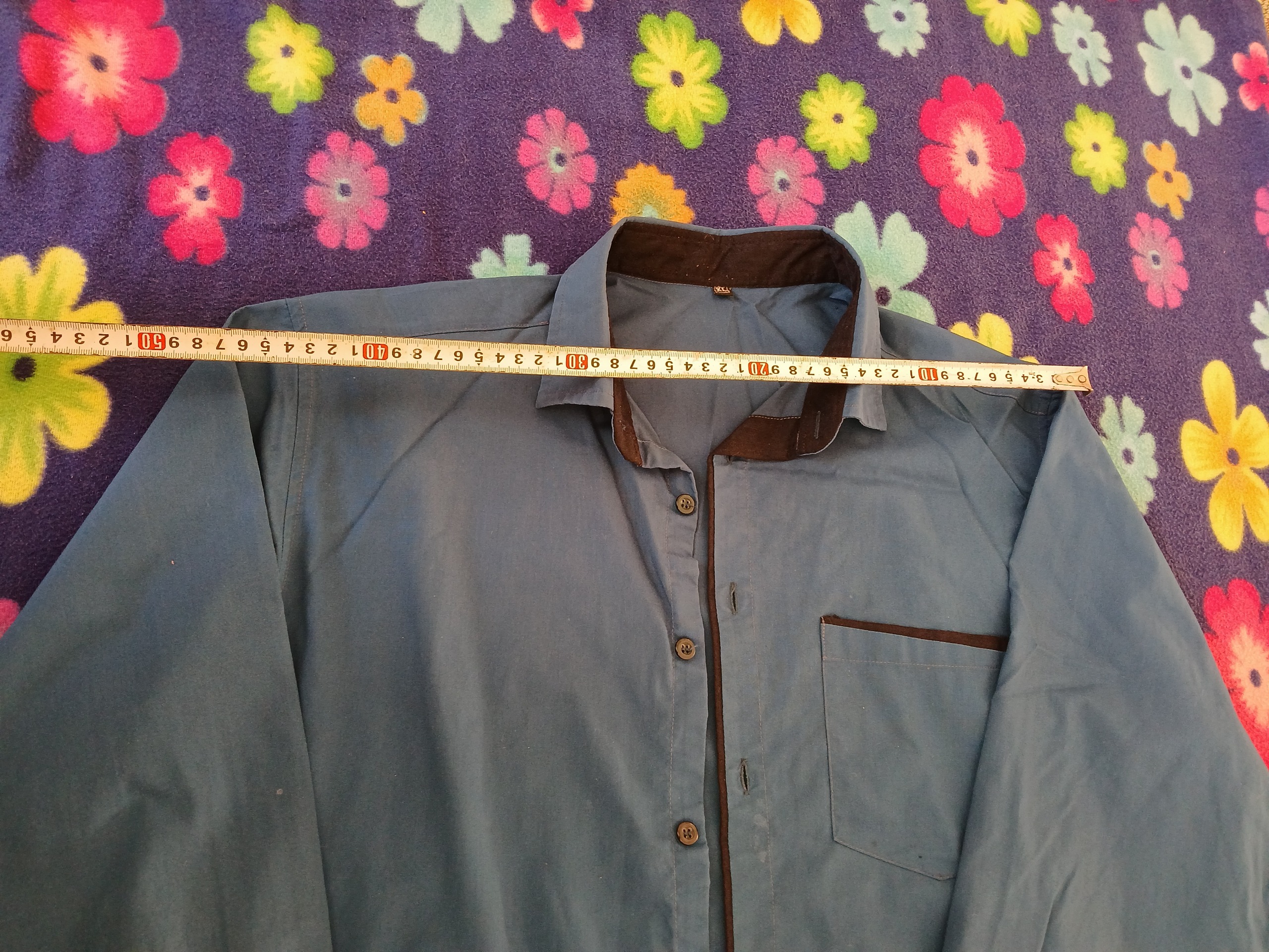 پیراهن ایکس لارج ابی کاربنی یا ابی نفتی خوشرنگ هست توی دوربین کم رنگ افتاده.سایز سرشانه و بلندی هم گذاشتم.