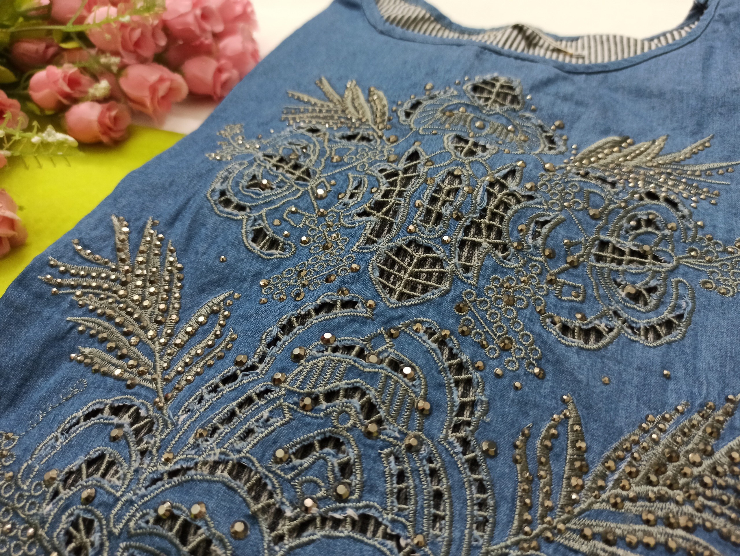 جلوی لباس گلدوزی و نگین کوبی شده فوق العاده با کیفیت و زیباست