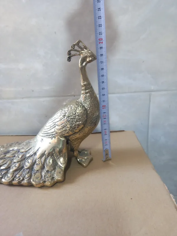 مجسمه طاووس برنجی با طراحی زیبا وکیفیت خوب دکوری وهدیه ماندگار اندازه درعکس مشخص میباشد کارسنگین