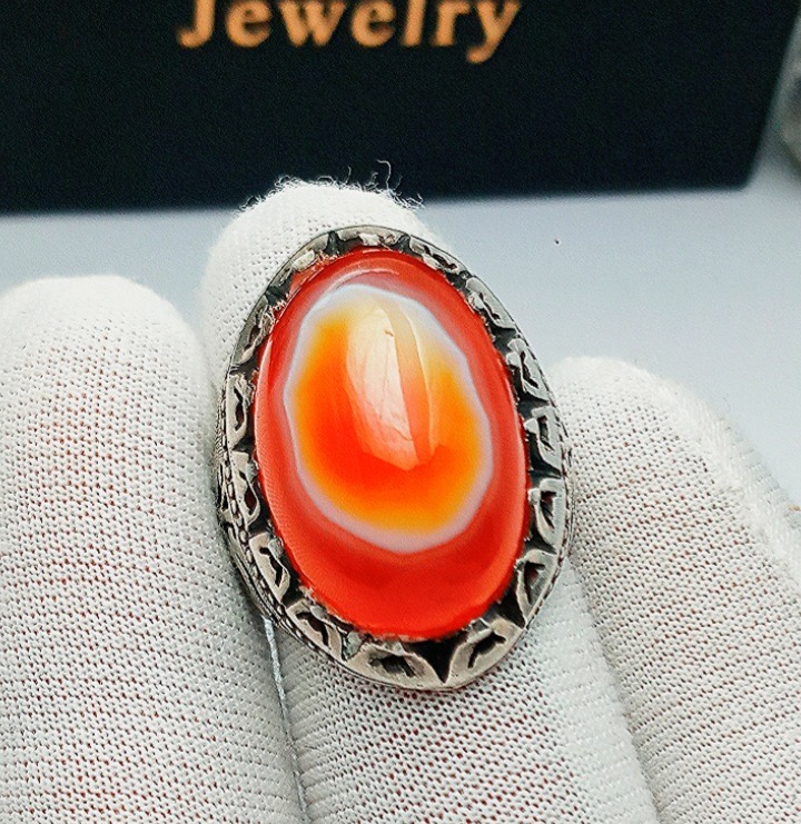 انگشتر شیک سنگ خوشرنگ عقیق باباقوری زیبا و پرتقالی