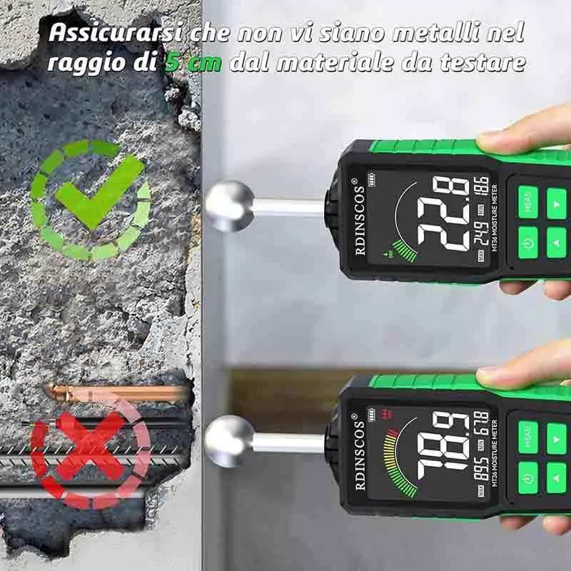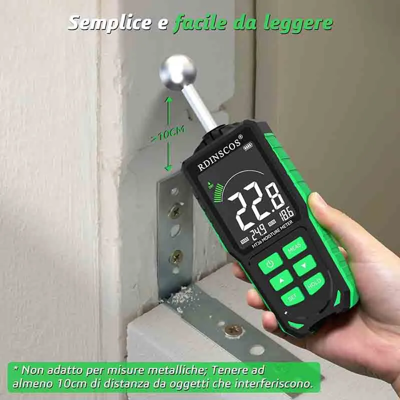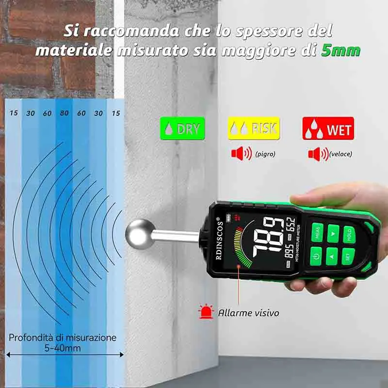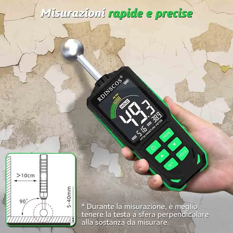 غیر مخرب: ترکر دیوار از یک پروب دایره ای برای تشخیص رطوبت در گوش ها، زیرزمین ها، سقف ها و در 40 میلی متر زیر سطح استفاده می شود بدون اینکه به مواد آسیب وارد شود.