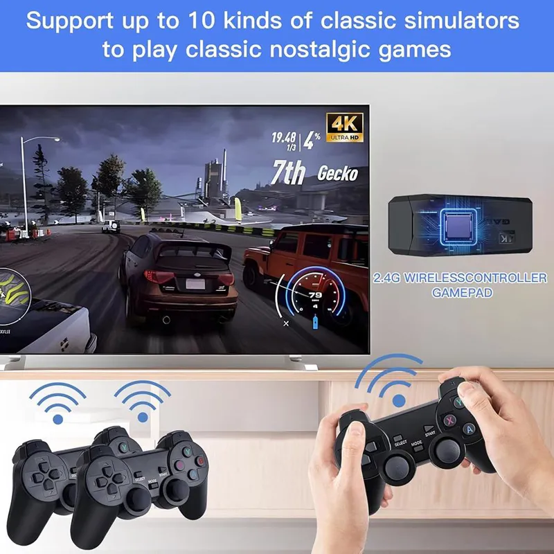 پشتیبانی از بازی های دو نفره - کنسول بازی تلویزیونی مجهز به 2 آداپتور کنترلر بی سیم برای فاصله 5 متری، اتصال پایدار و بدون محدودیت است. این یکی از سرگرم کننده است که وقتی با خانواده و دوستان خود دور هم جمع می شوید انجام دهید.