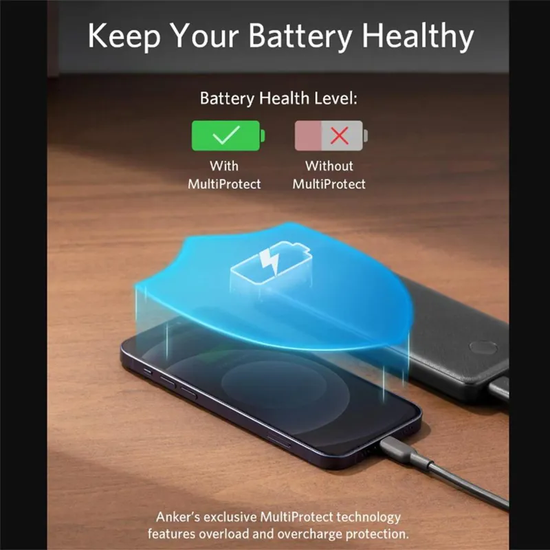 ایمنی برتر: سیستم ایمنی MultiProtect جامع Anker شامل حفاظت از شارژ بیش از حد، حفاظت از اتصال کوتاه، کنترل دما و موارد دیگر است.
