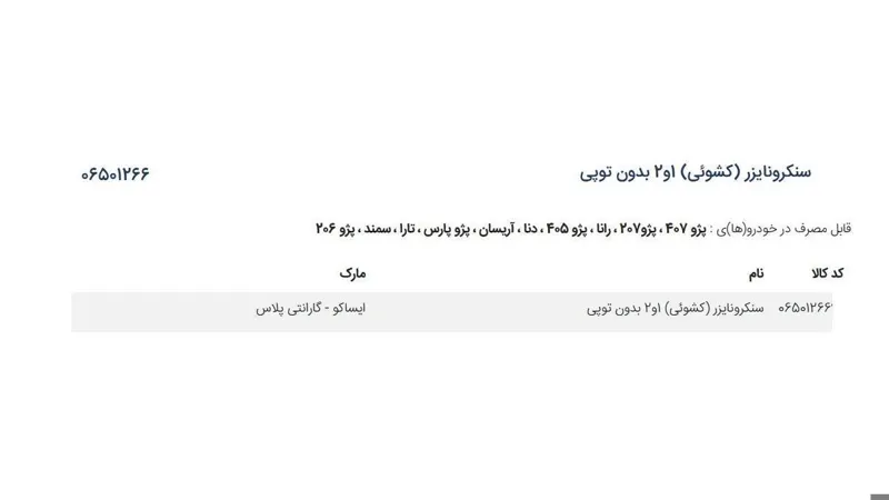 دنده کشویی 1 و 2 پژو بدون توپی پژو 405 پارس سمند 206 گیربکس be شرکتی