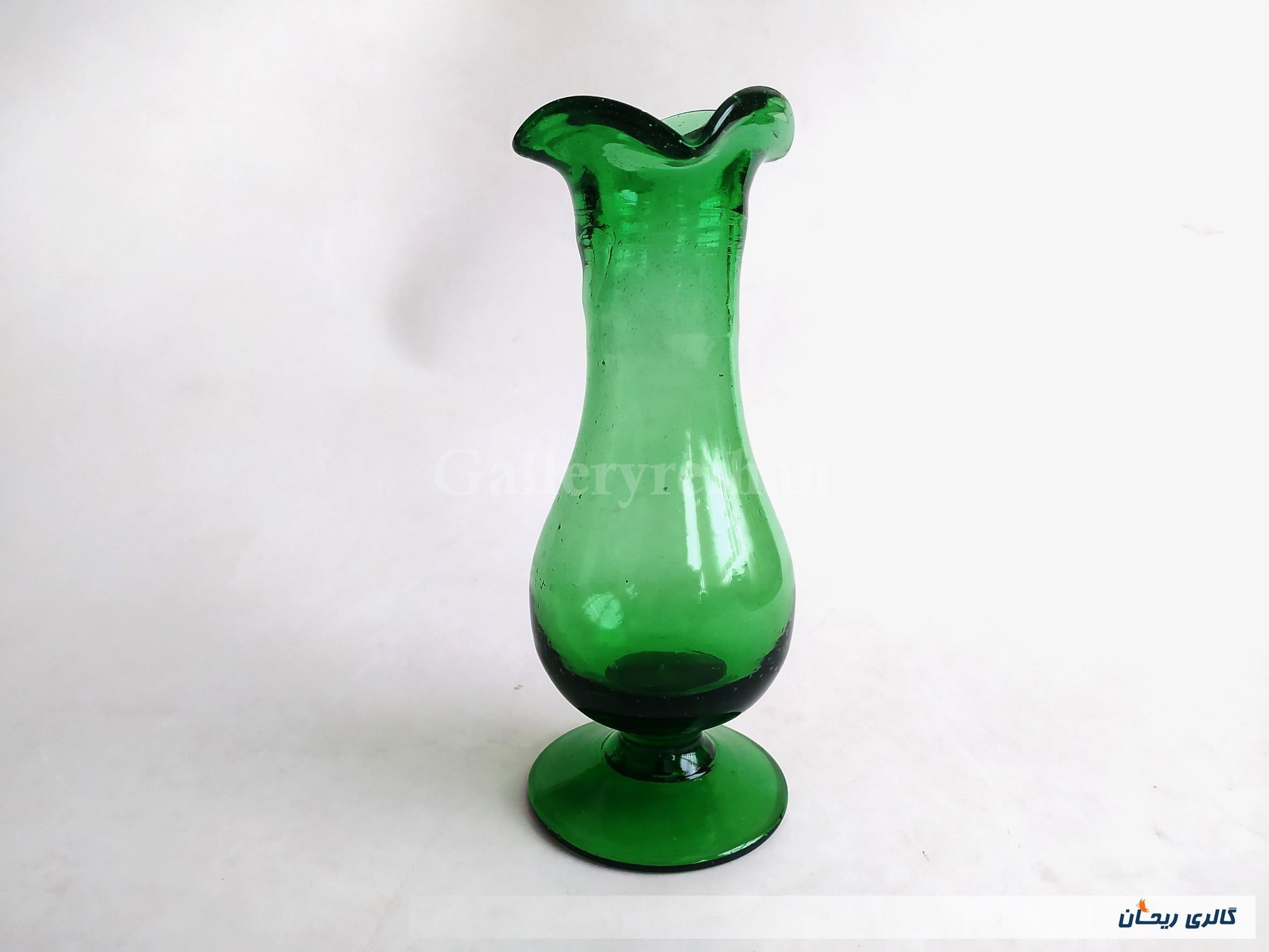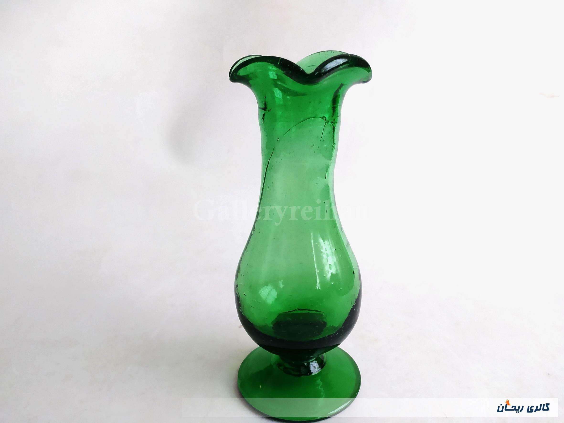 گلدان پایه داره لاله ای قدیمی دستساز سبز (کد44906)