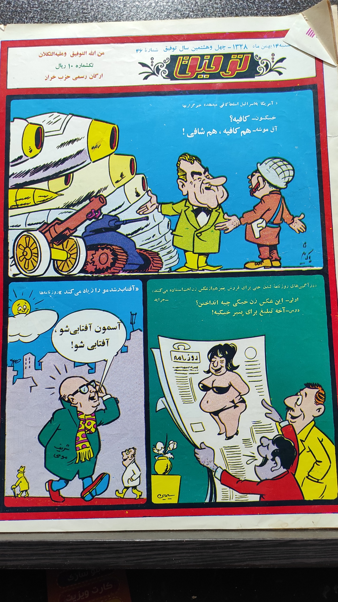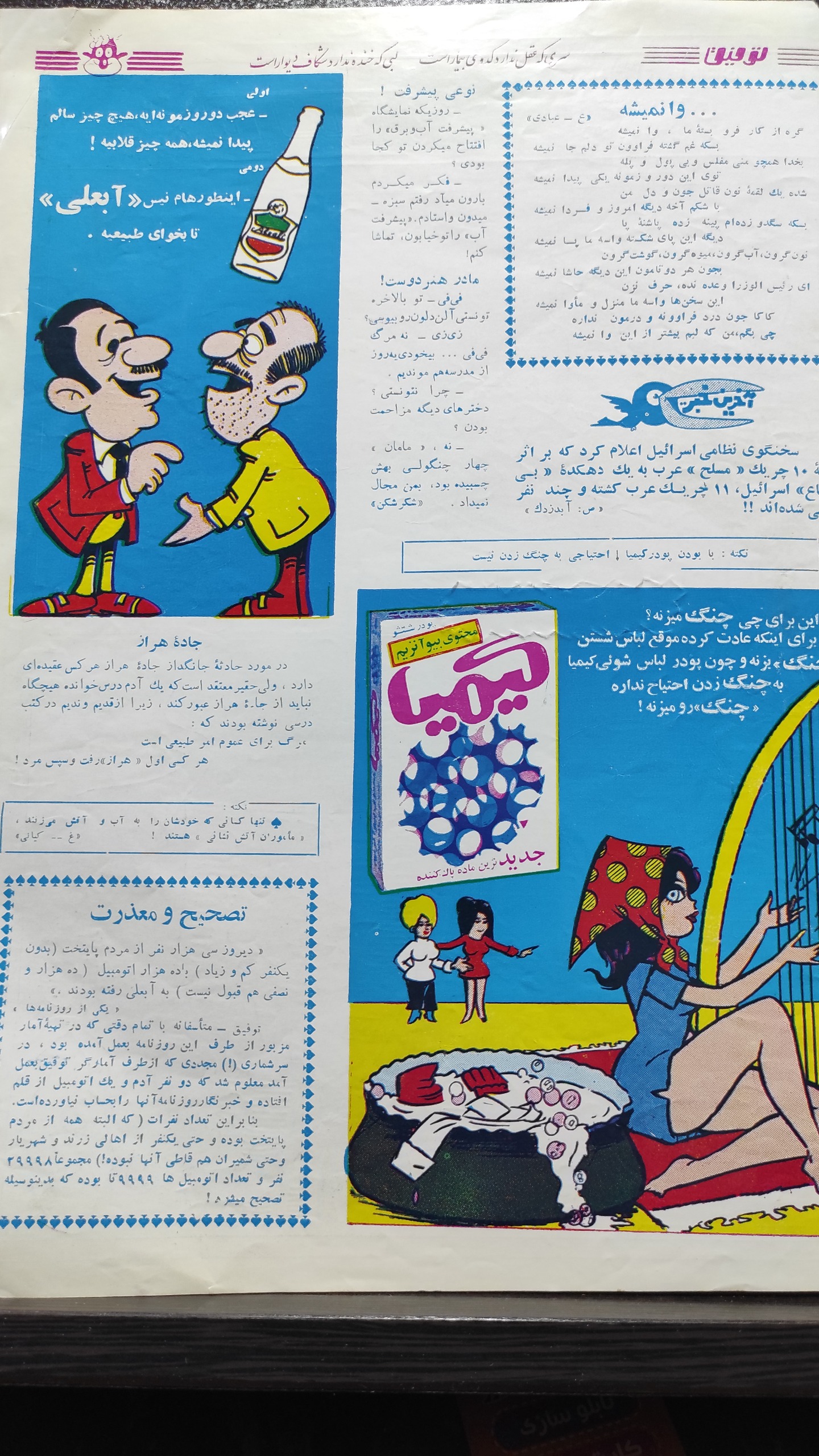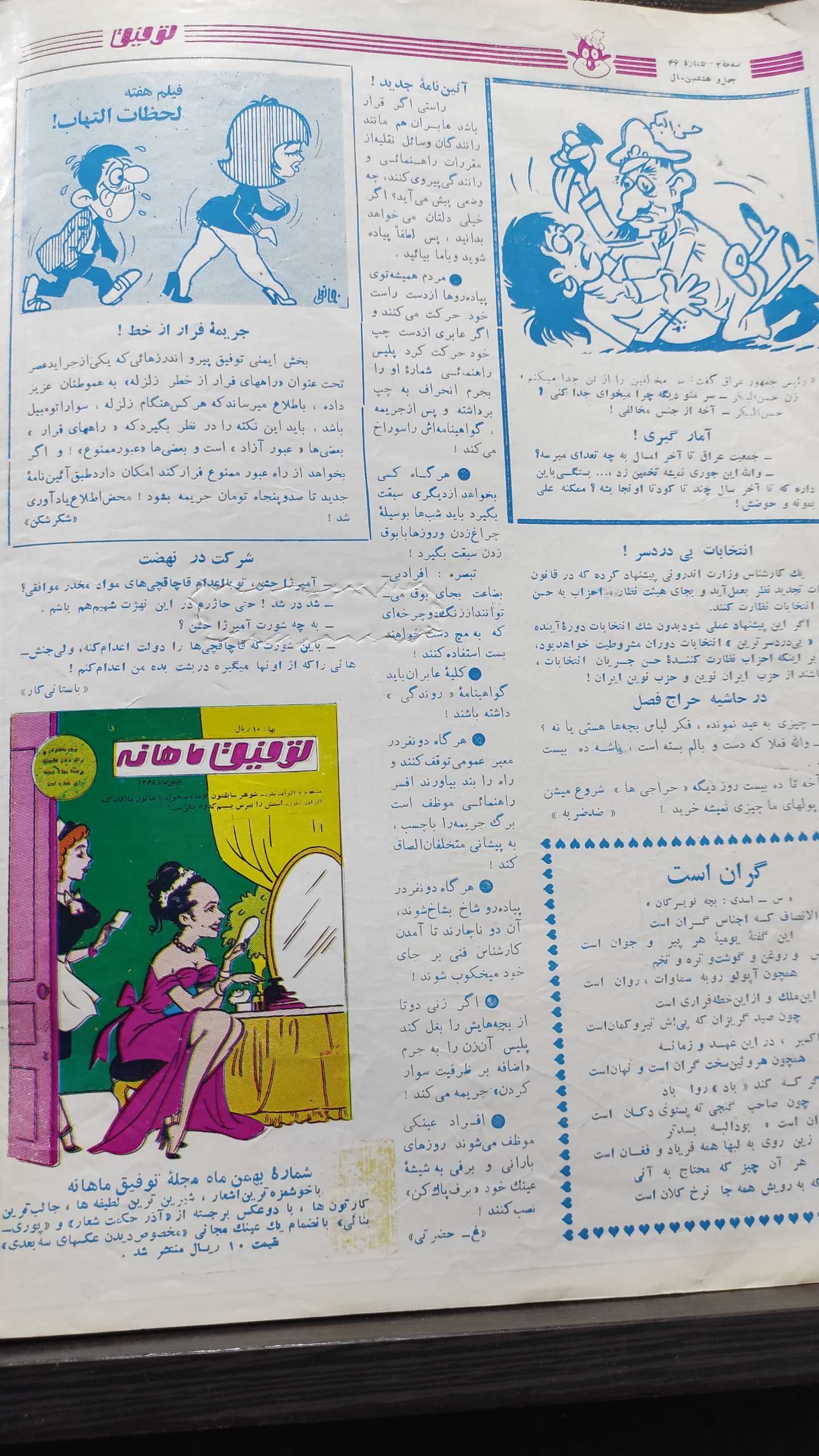 [ ] خریدار محترم لطفا با دقت به توضیحات هر کالا دقت بفرمایید کالاها کیفیت شان مطابق با تصویر هست و انواع کتاب، مجله، روزنامه، اسناد و عکسهای قدیمی از دوره قاجار تا پهلوی و اوایل انقلاب موجود میباشد باقیمت ارزان، تمامی پست ها به سراسر ایران پیشتاز ارسال