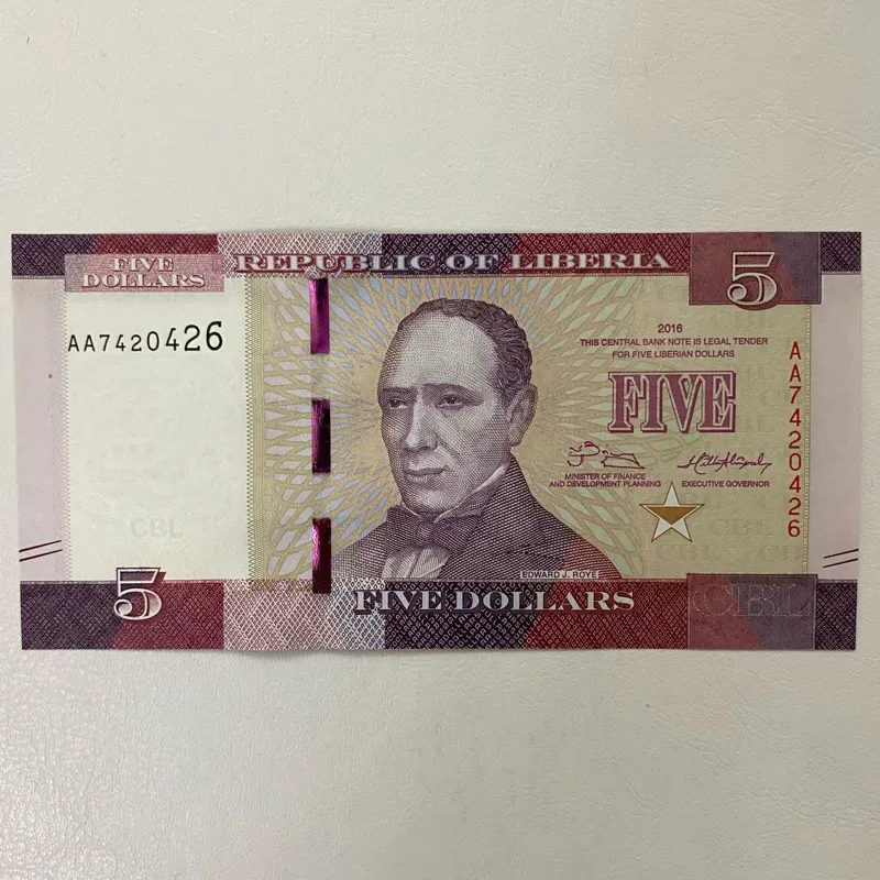 اسکناس زیبای لیبریا با کیفیت بانکی همراه با تصویر " ادوارد جیمز روی" پنجمین رئیس جمهور کشور لیبریا.