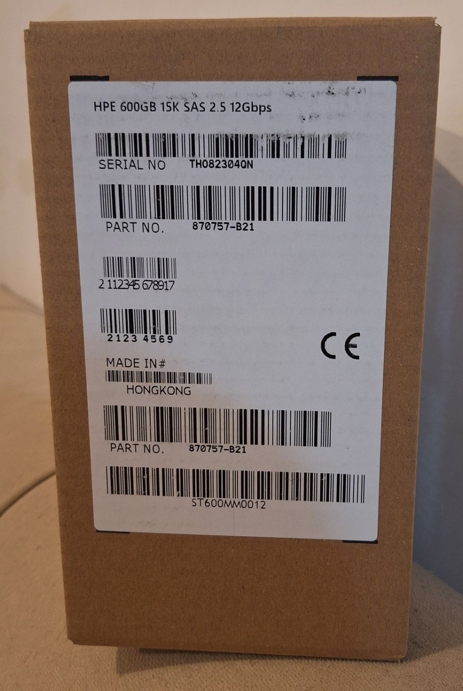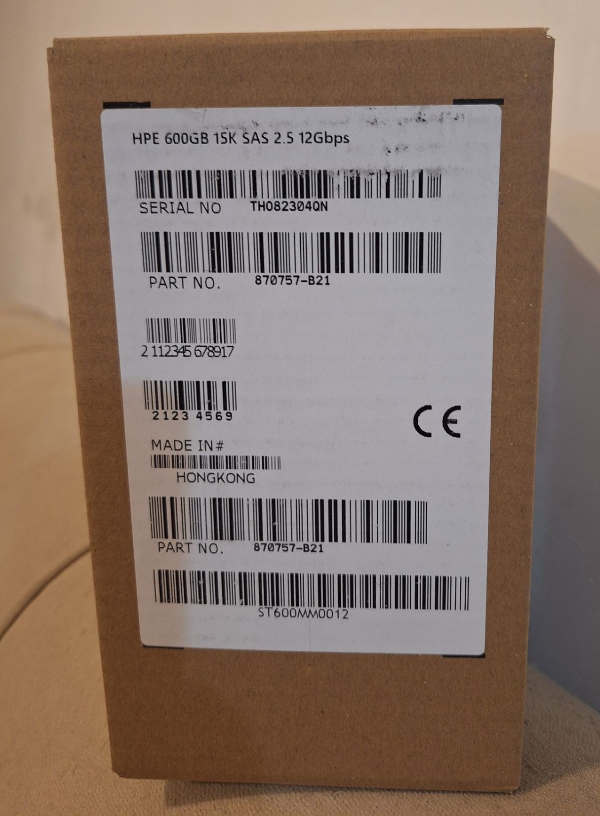 :Description:HPE 600GB SAS 12G Enterprise 15K SFF (2.5in) SC 3yr Warranty HDD For Use with Gen8/Gen9 or Newer