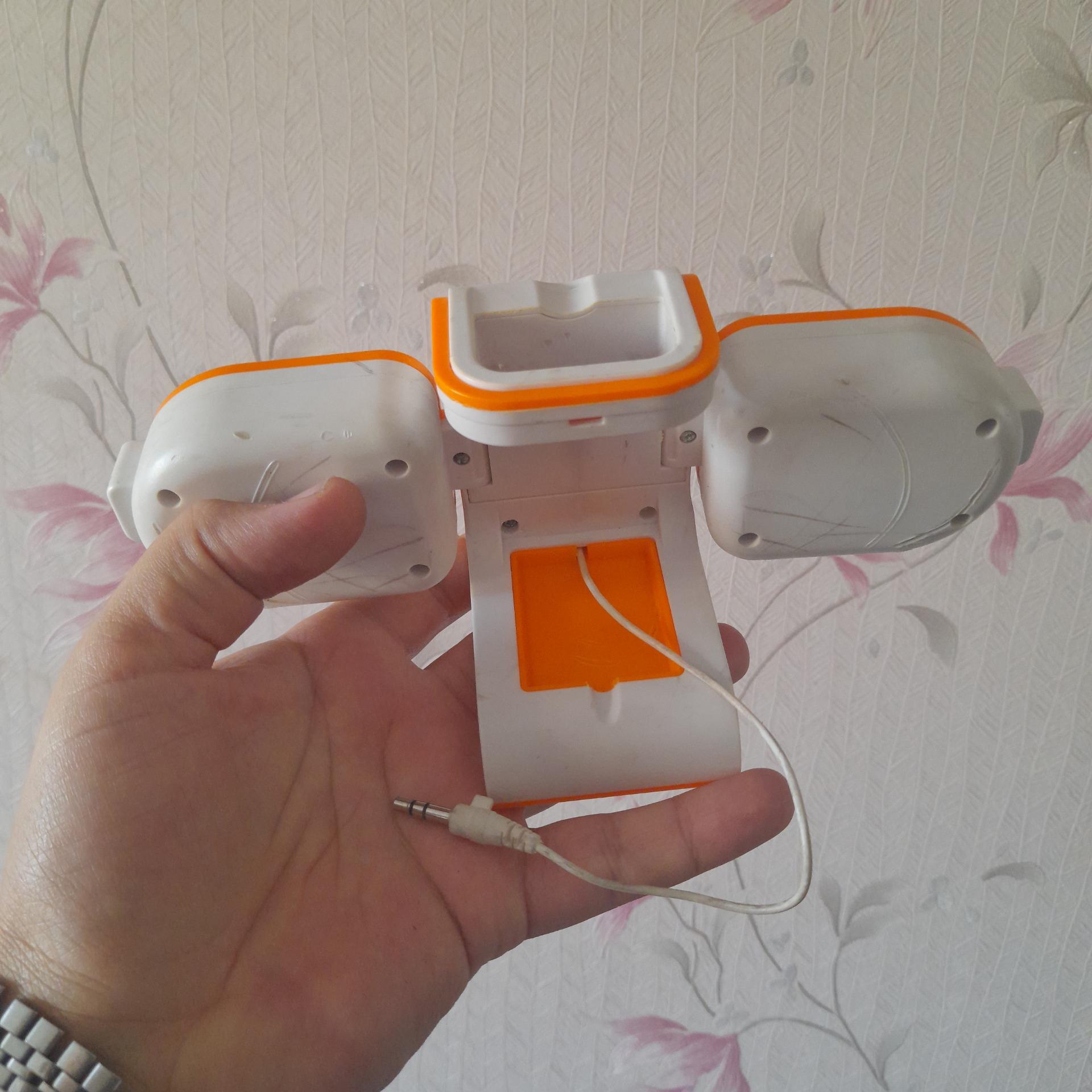اسپیکر دو بانده وصل میشه ب گوشی صداش خوبه فقط کلید روشن خاموشش افتاده ک یسره شده وگرنه سالمه