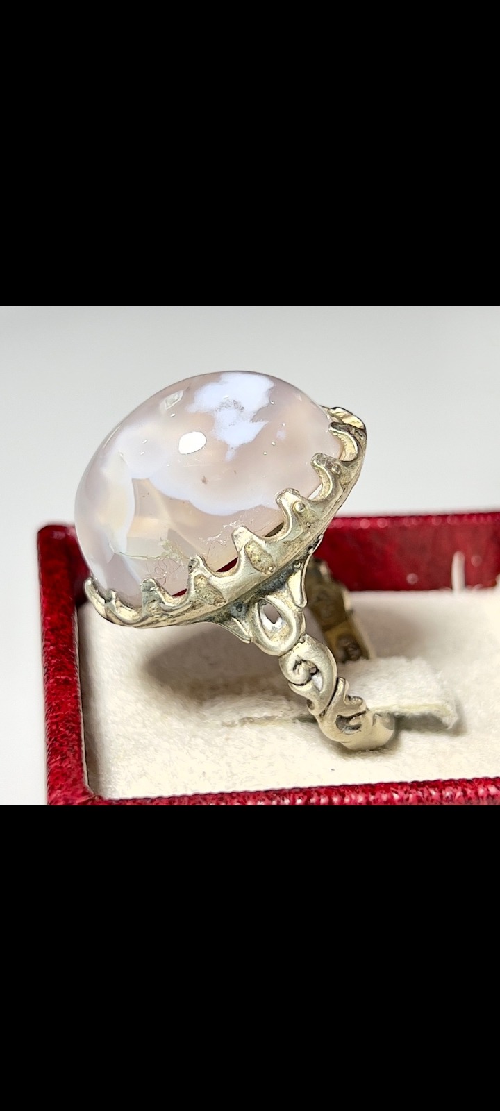 انگشتر شاهکار نگین گنبدی عقیق سلیمانی ابری