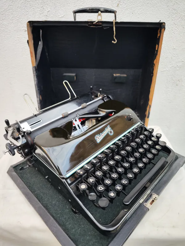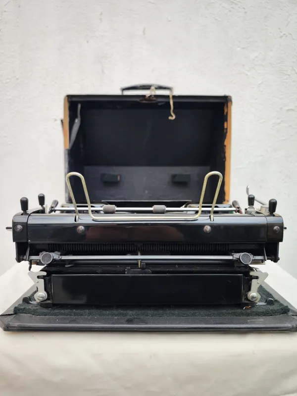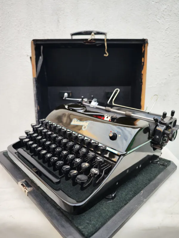 ماشین تایپ آنتیک آلمانی بسیار تمیز و سالم قدمت بالای هشتاد سال فقط قفل کیفش خرابه خود تایپ در حد نو کاملا سالم