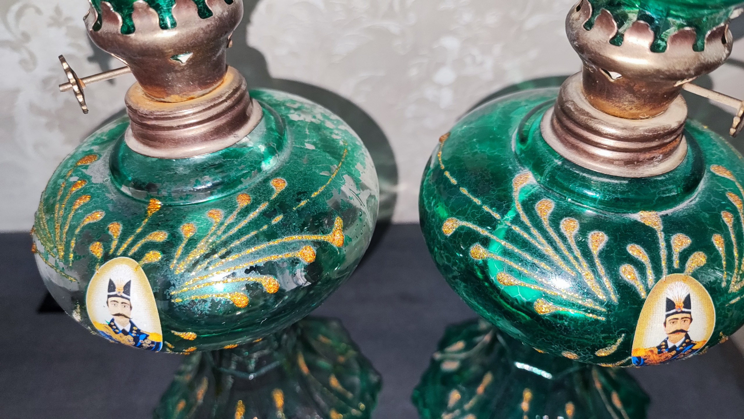 یک جفت چراغ گرد سوز طرح ناصرالدین شاهی
