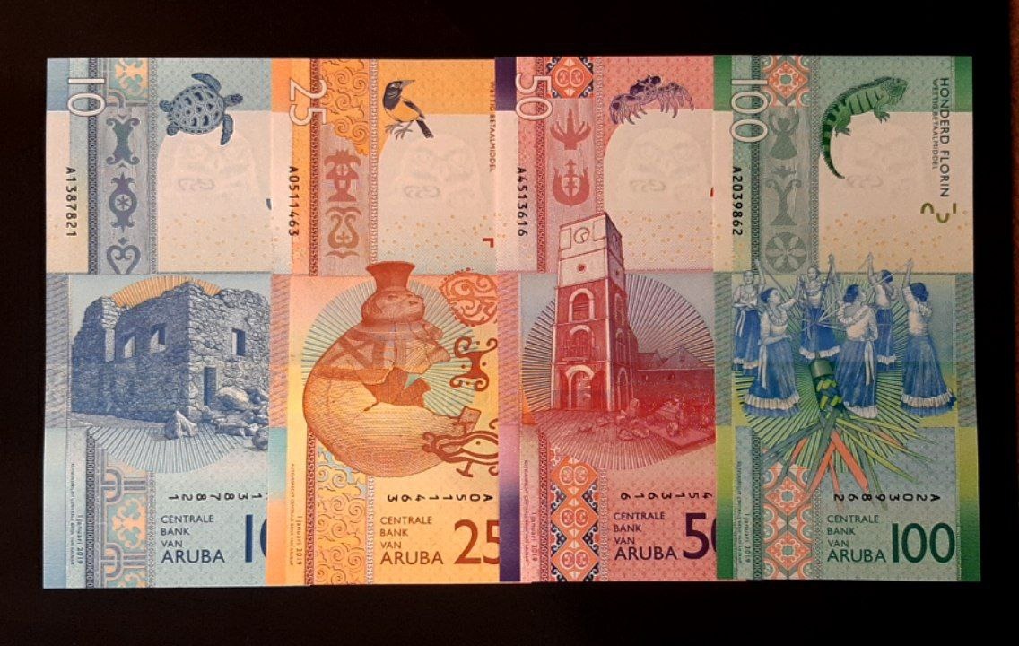 تصاویر حیوانات بومی این کشور و در پشت اسکناس بناهای تاریخی و آداب فرهنگی آروبا