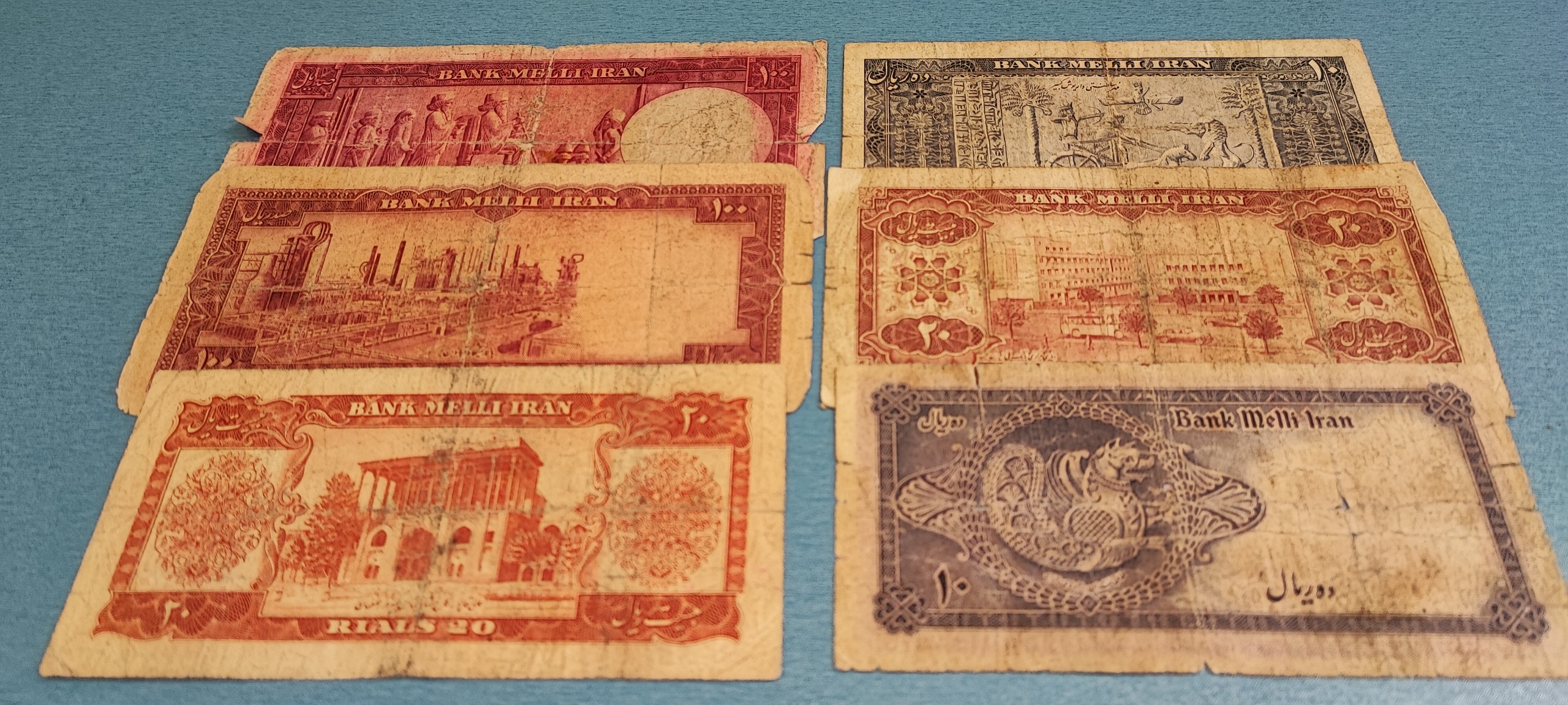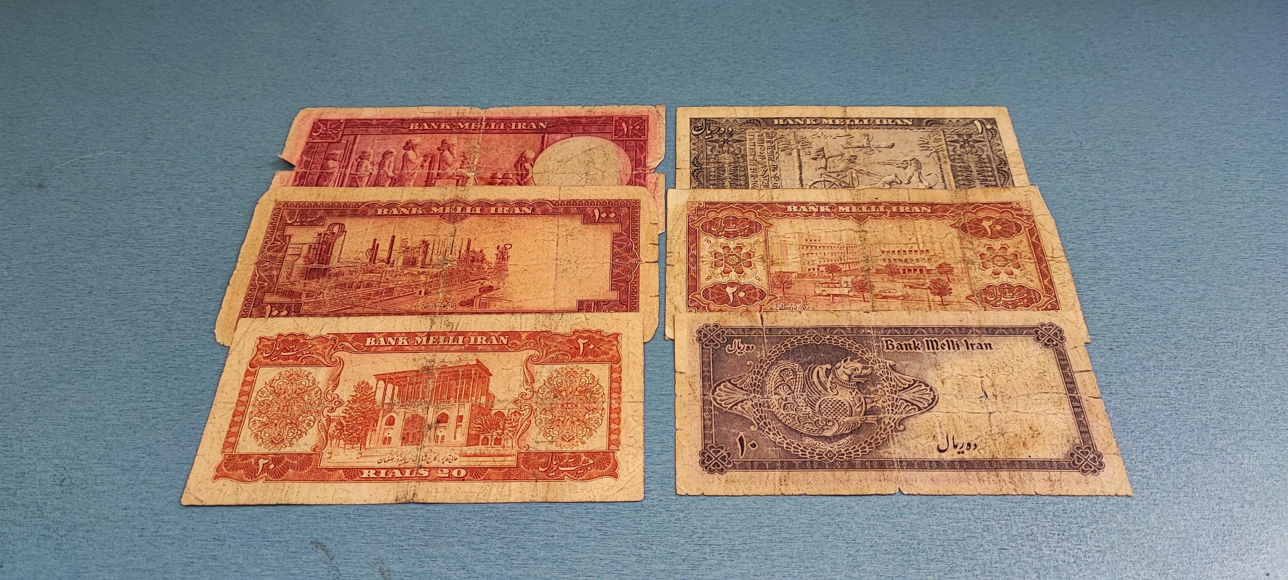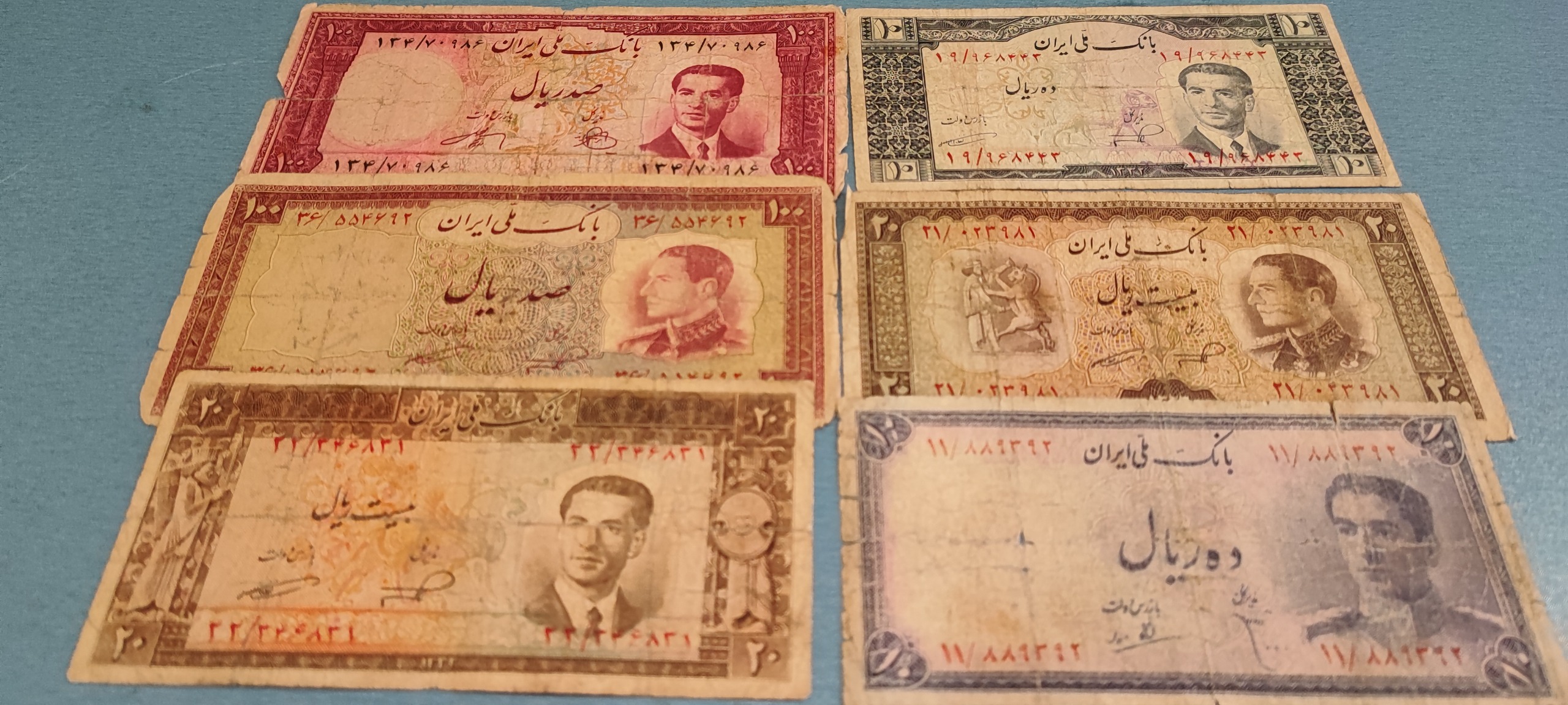 6 عدد اسکناس ملی محمدرضا پهلوی