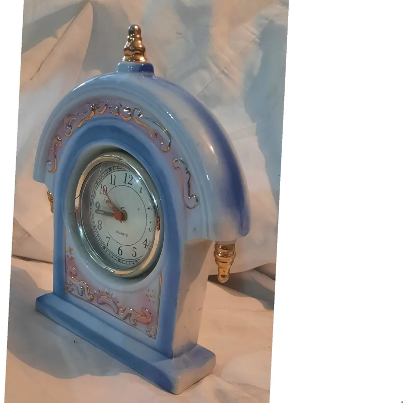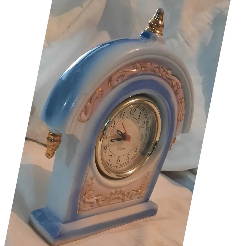 ساعت رومیزی قدیمی بدنه سرامیکی با موتور آرام گرد