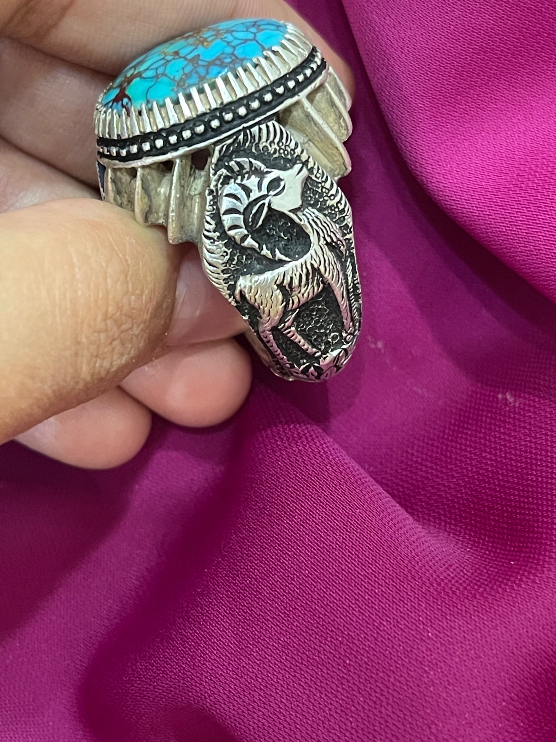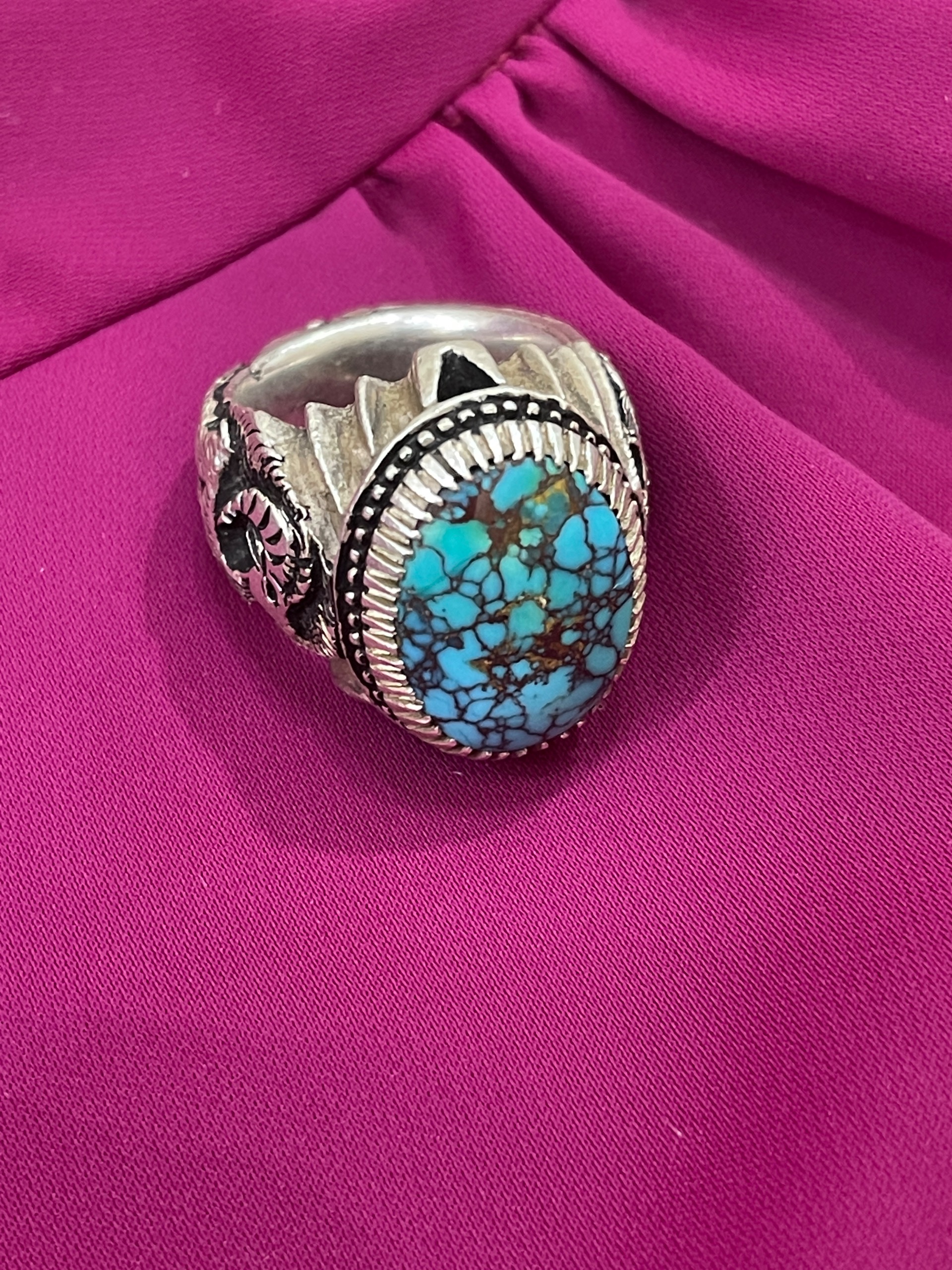 انگشتر فیروزه عنکبوتی نیشابور رکاب فخر نقره قلم