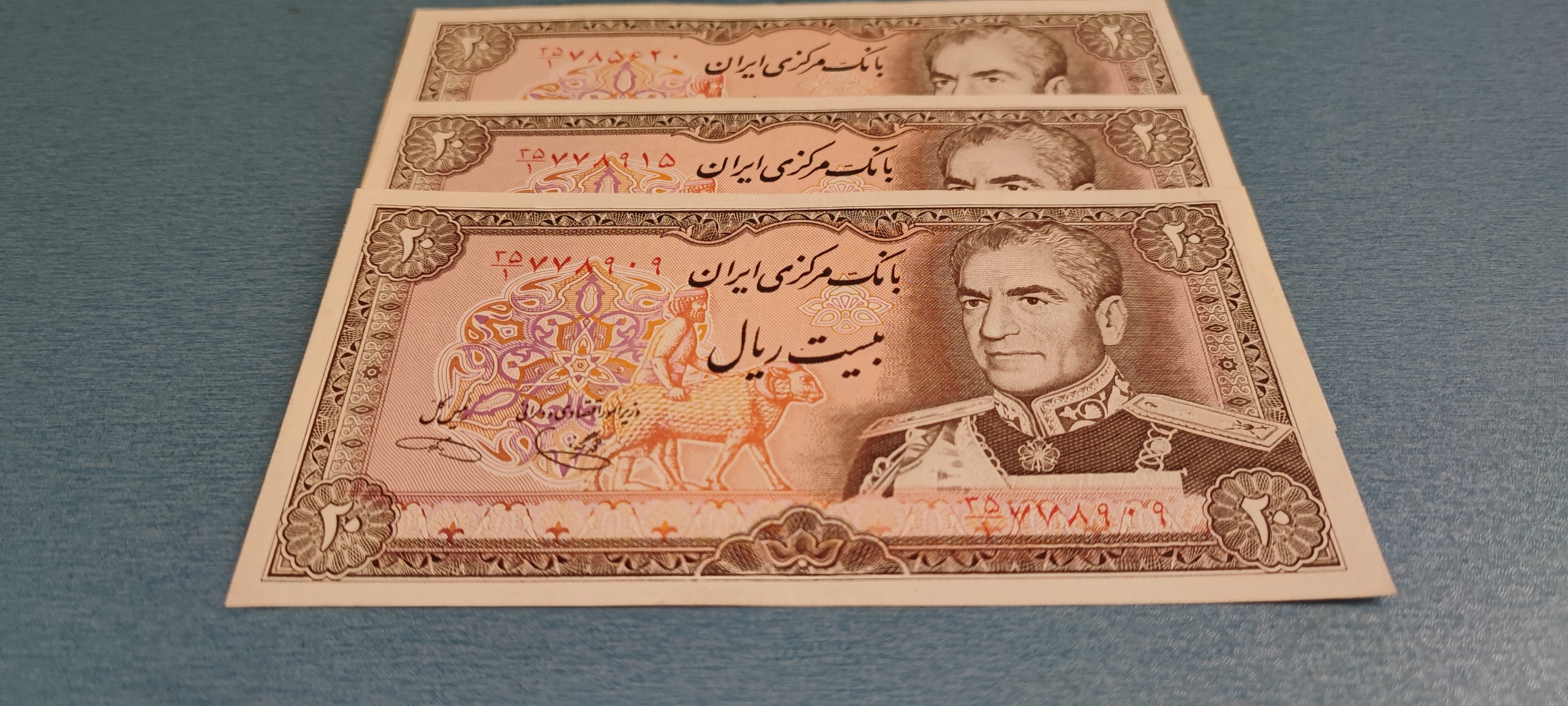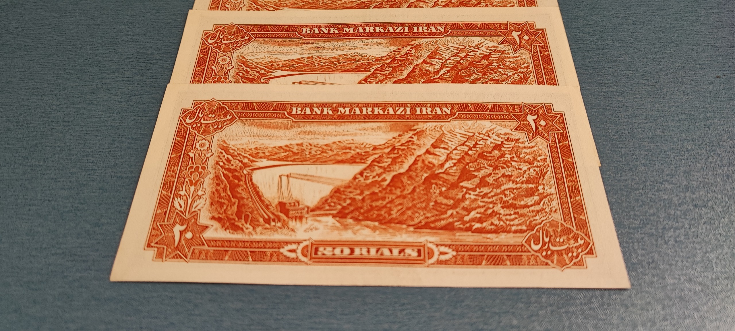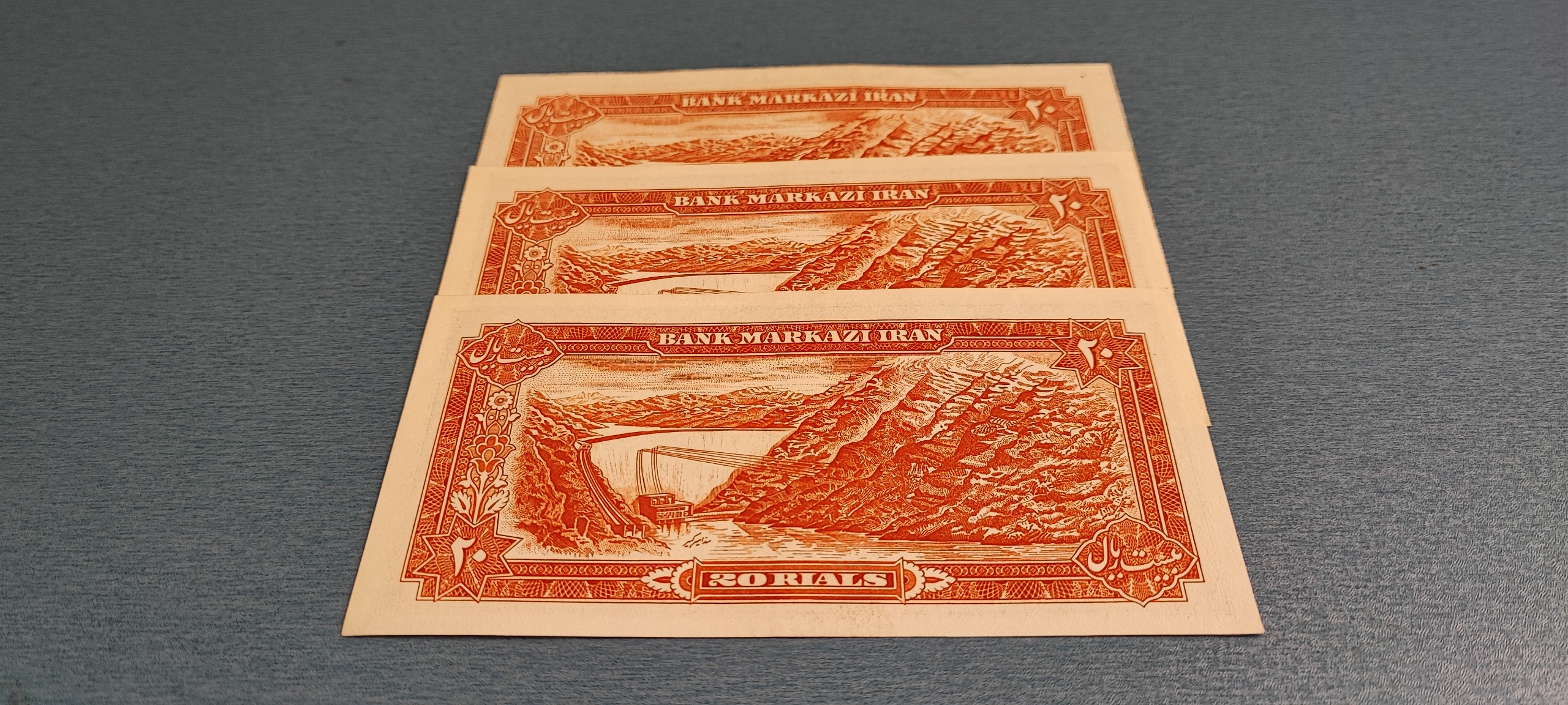 سه عدد اسکناس بیست ریال بانکی سری 15