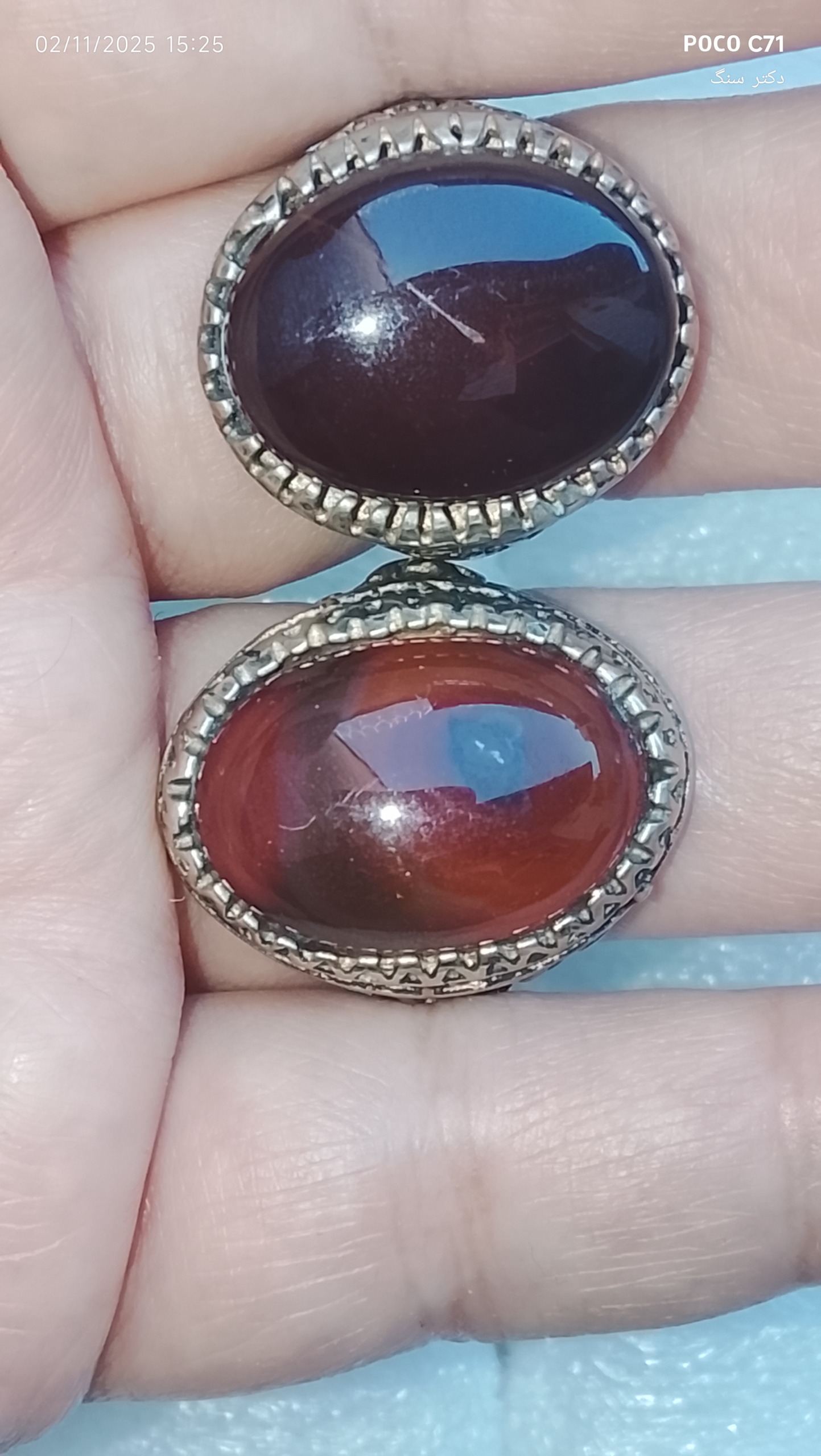 جفت انگشتر عقیق یمنی وسلیمانی ناب قدیمی کهنه