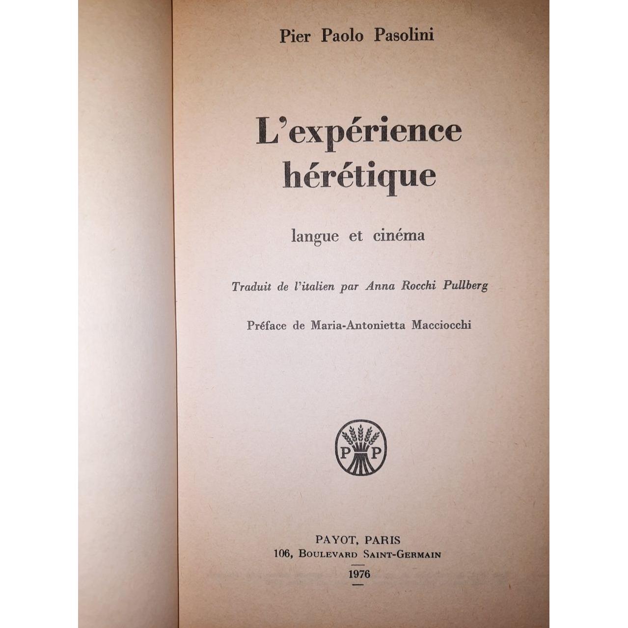LExpérience hérétique: Langue et Cinéma | Pier Paolo Pasolini | Préface de Maria-Antonietta Macciocchi | 280 Pages | Payot, 1976.