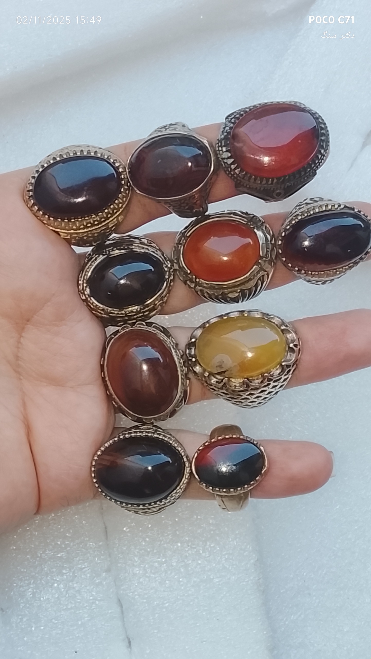 ده عدد انگشتر متنوع ومعدنی طبیعی اصل ناب