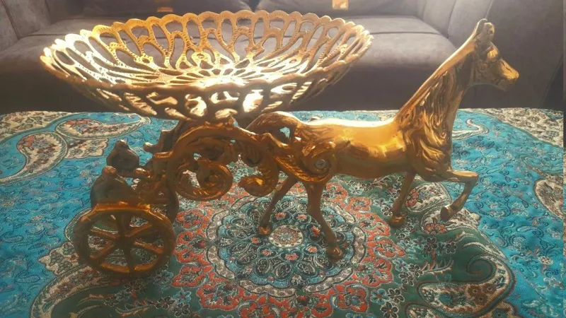 مجسمه برنز کالسکه و اسب بسیار زیبا