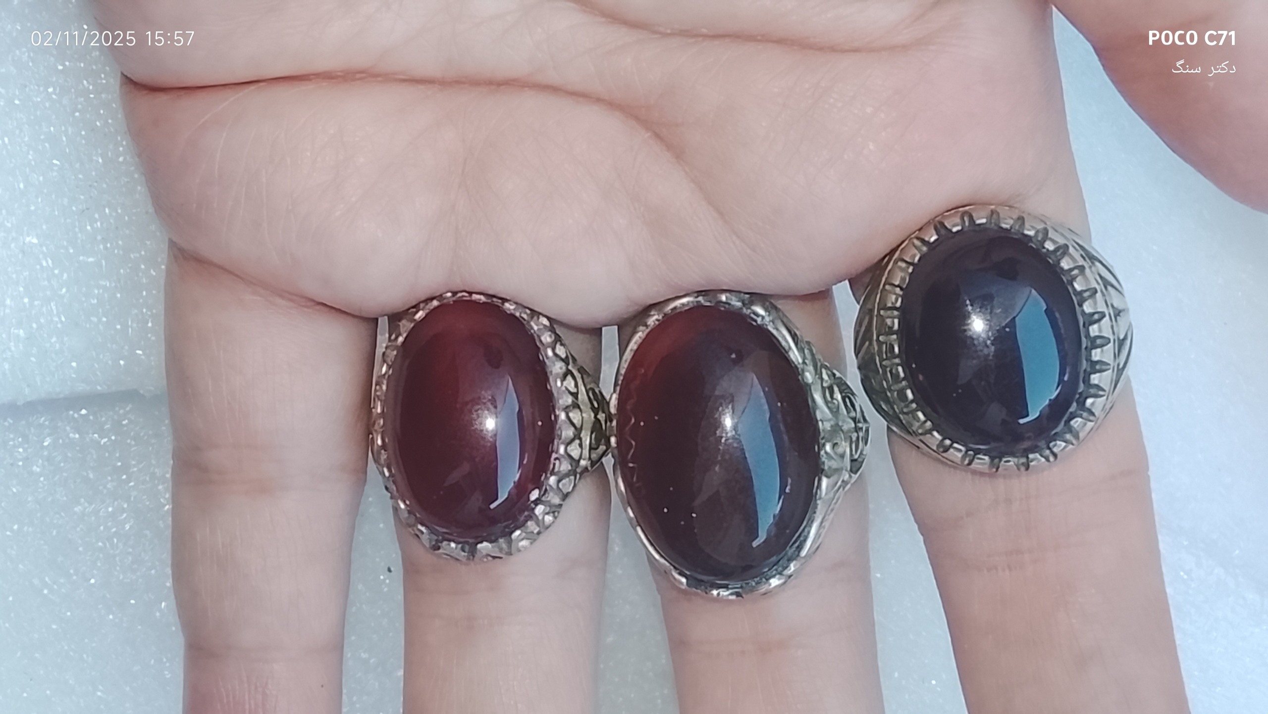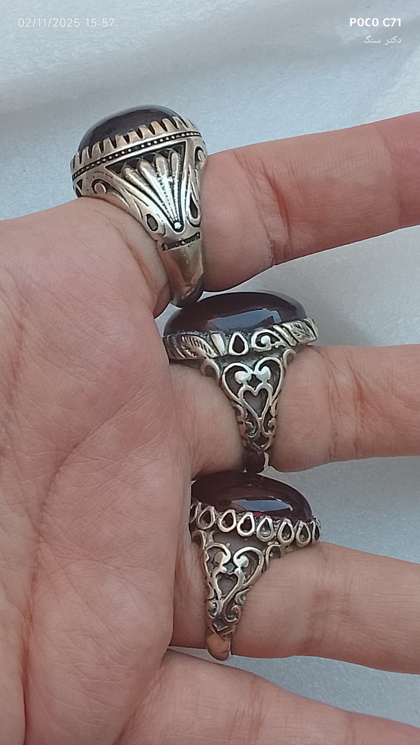 3 عدد انگشتر عقیق یمنی سرخ قهوهای معدنی طبیعی
