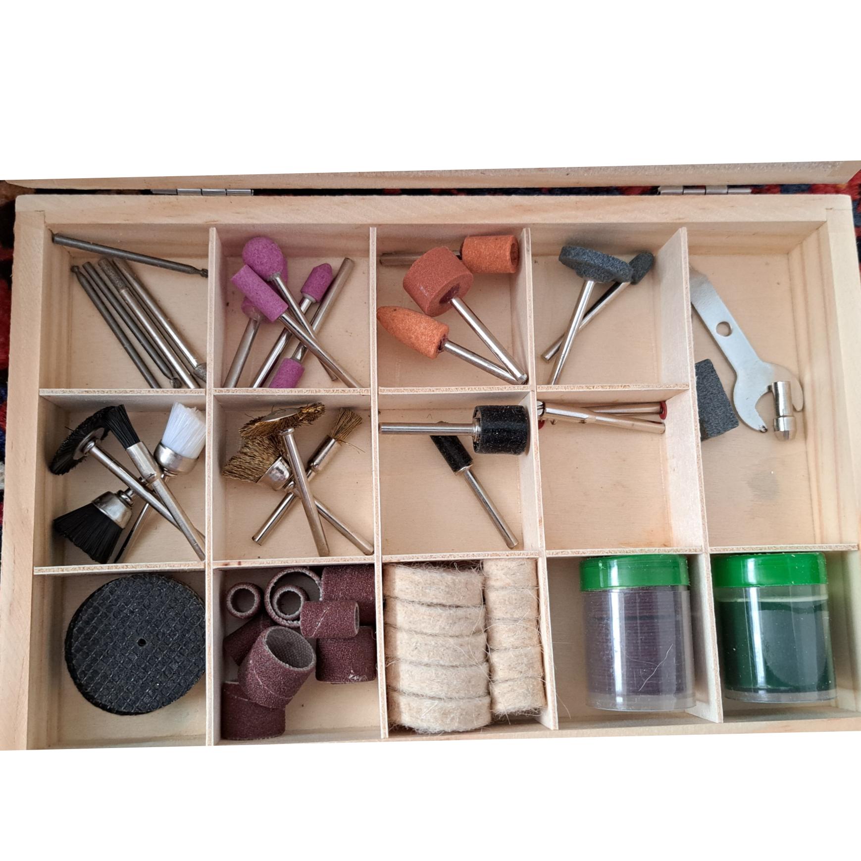 دارای سنگ سنباده، پد پولیش کاری ، سنگ انگشتی و متعلقات داخل جعبه