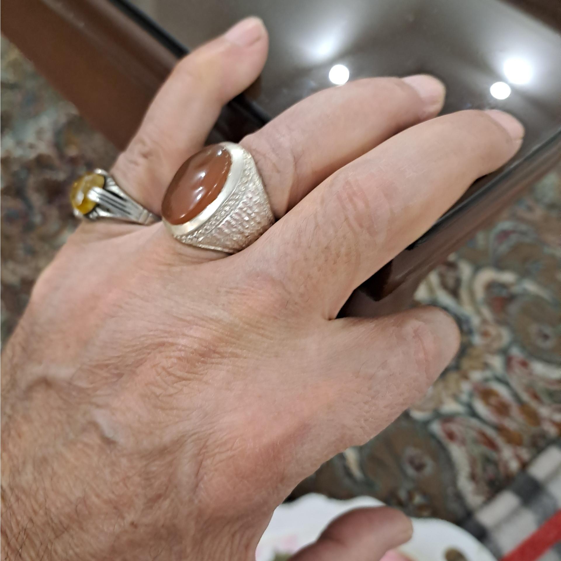 انگشتر عقیق عسلی رکاب دست ساز استاد دهقان سایز 59 وزن 16/70